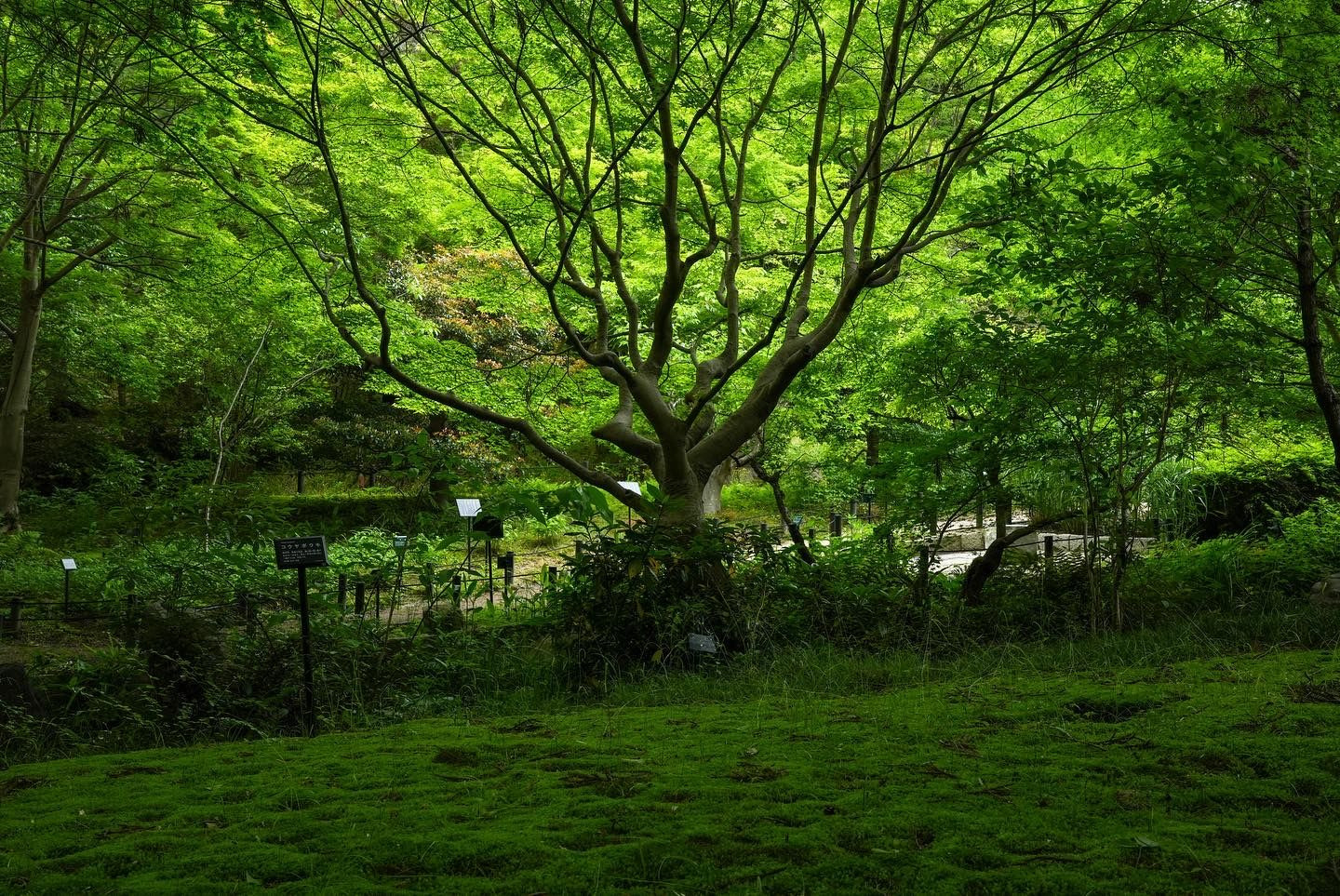 薄暗い森の中にスポットライトを浴びたような新緑。そして血管のような枝張りに魅せられました