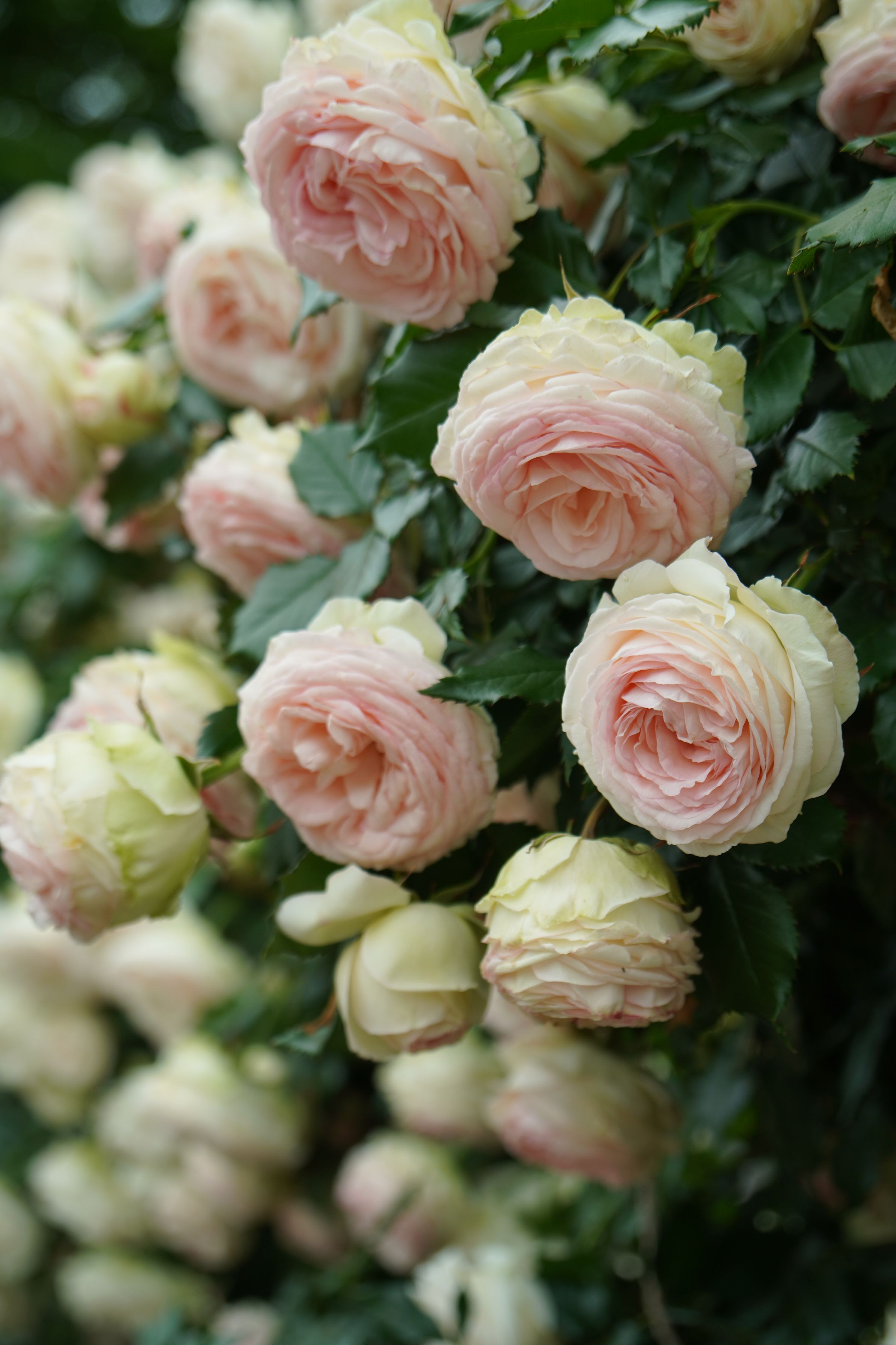 フェンス北側の優しい色合いのロンサール。