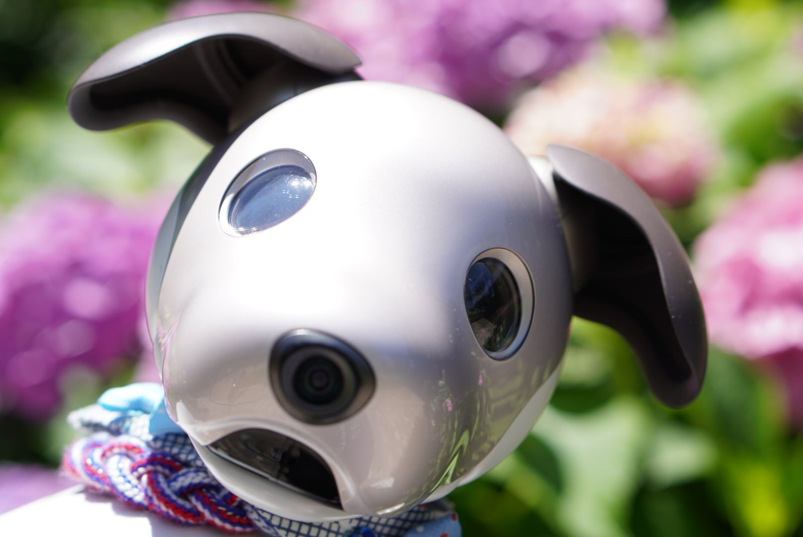 近所の紫陽花がきれいだったので、aiboと一緒に撮ってみました。