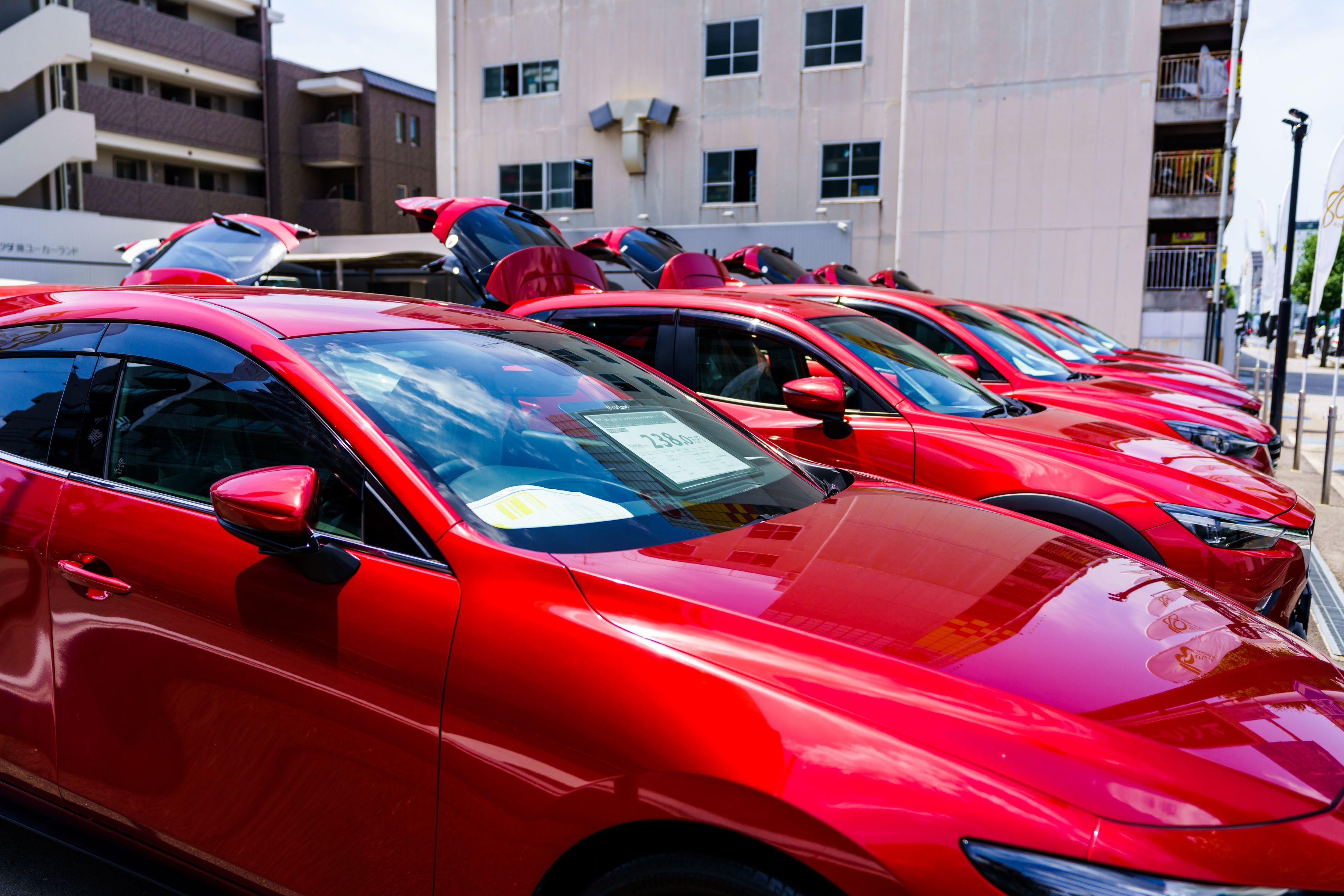 近所の中古車センターにて この赤色はかっこいいです