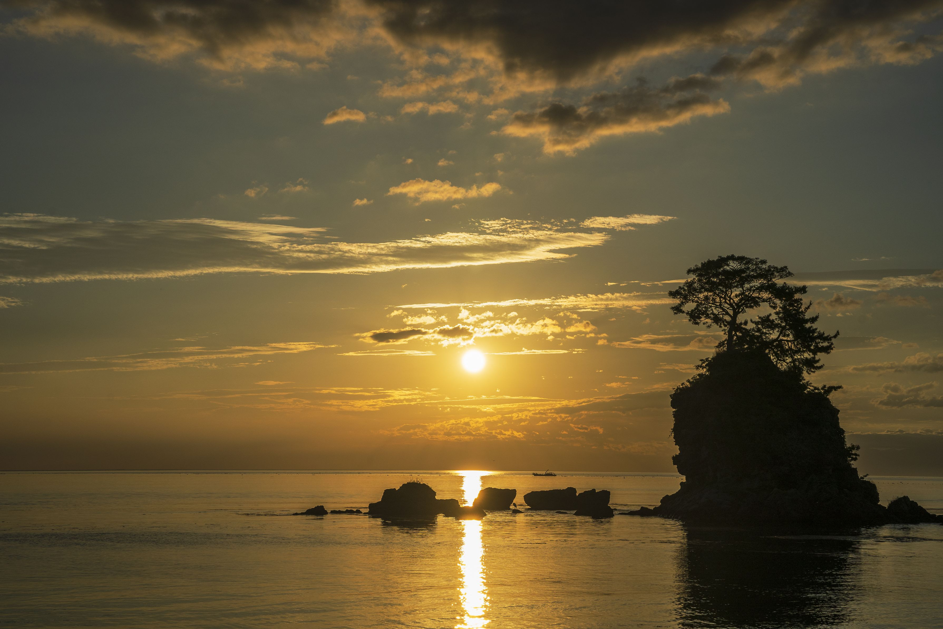日の出の誰もいない時間帯の雨晴海岸の写真です。 ただ波の音だけが聞こえてくる心地よい時間でした。
