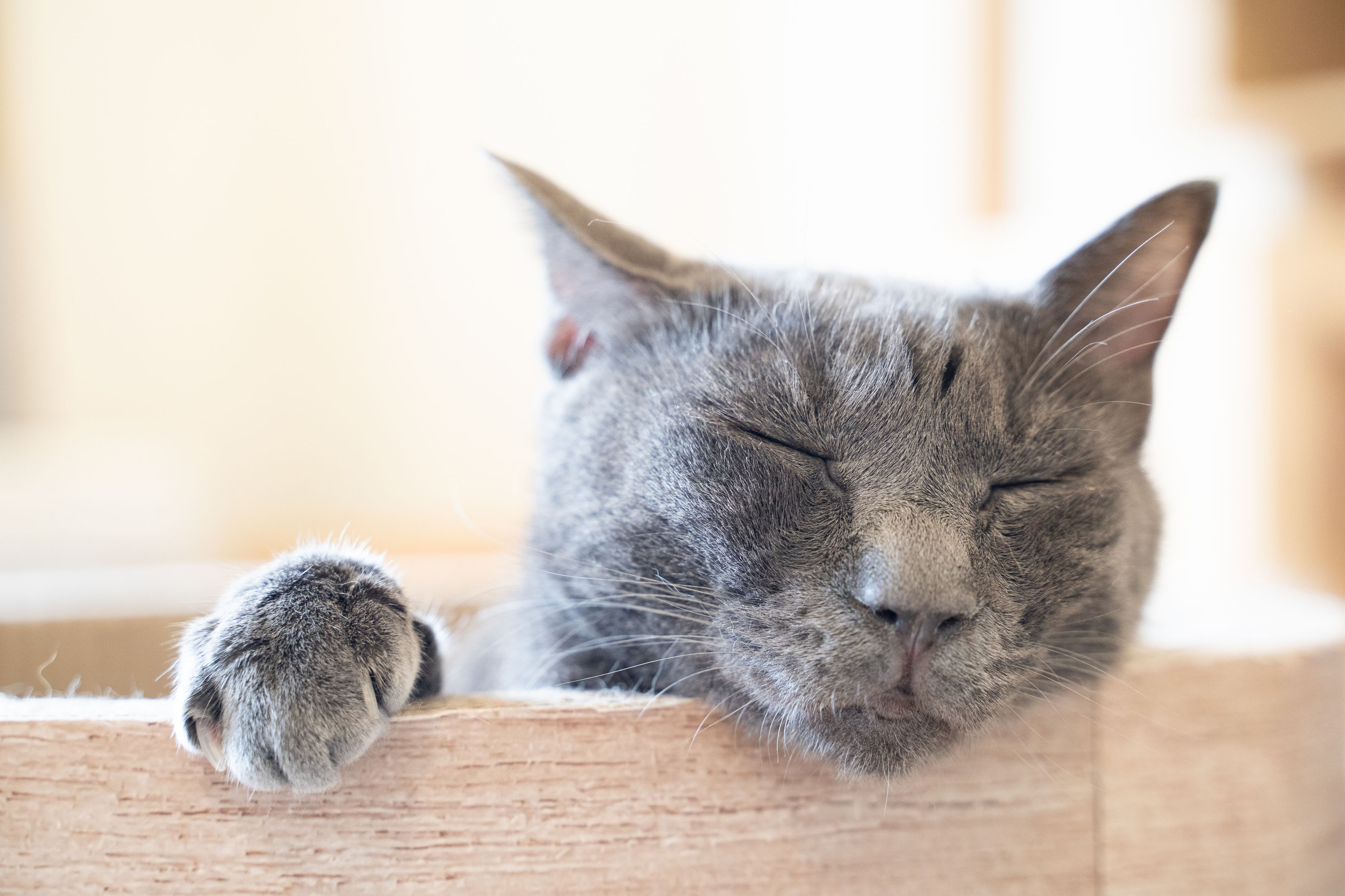 猫は器用な格好で寝ていることがありますね。片足が出ていてかわいいです。