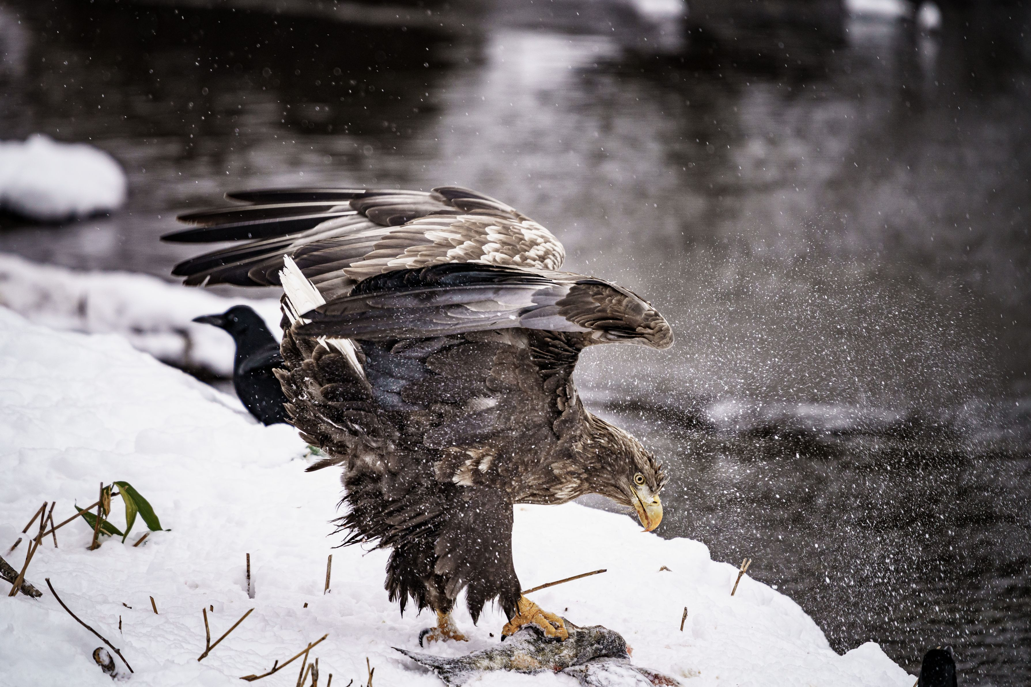 獲物ん掴み取る力強さと舞い上がる雪の迫力に感動しました。 #野鳥 #オジロワシ#