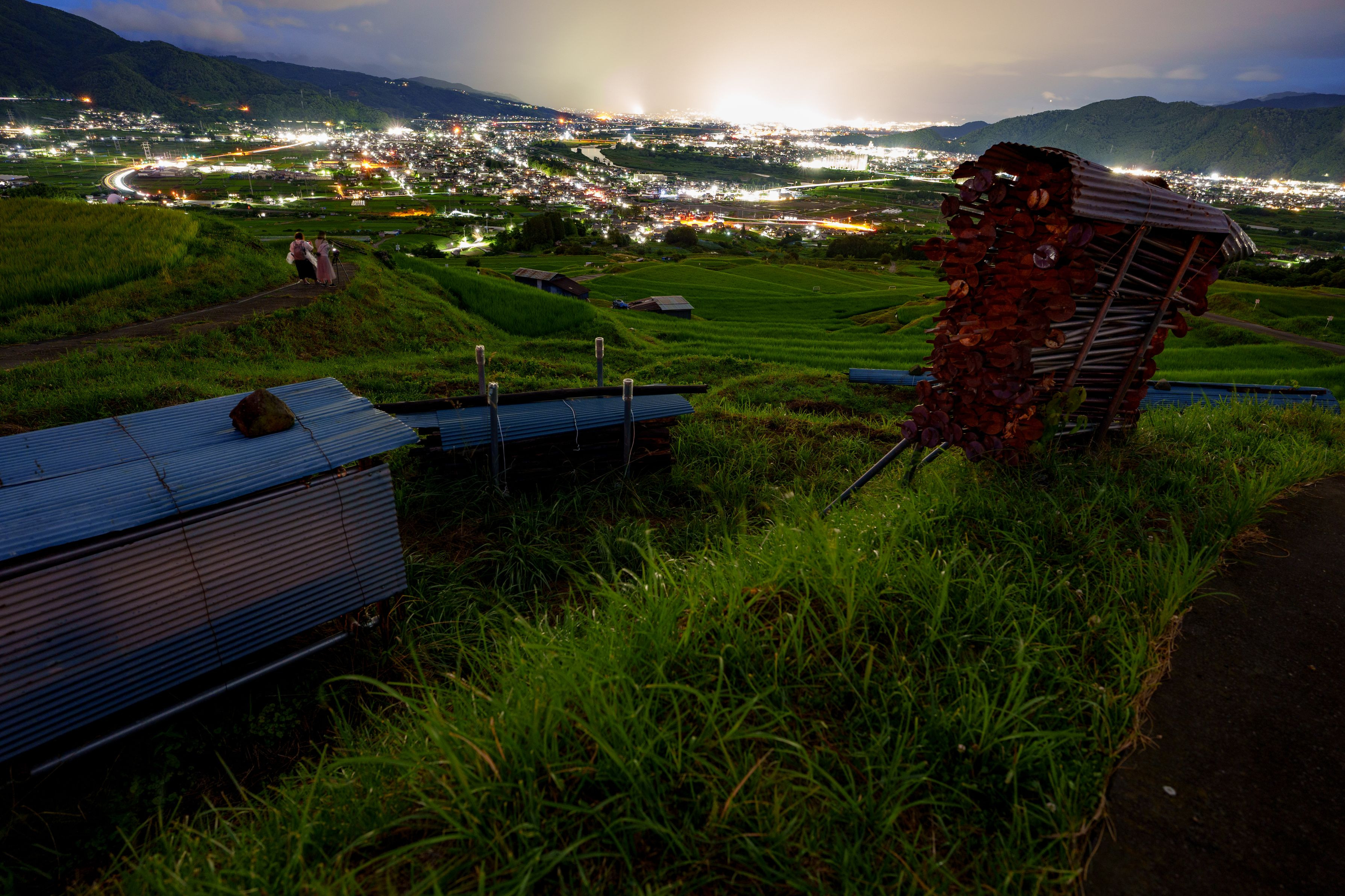 スーパームーンと棚田というテーマの撮影会に参加しました。 残念ながら雨天で月見えず、棚田と長野の街の夜景を撮影しました。