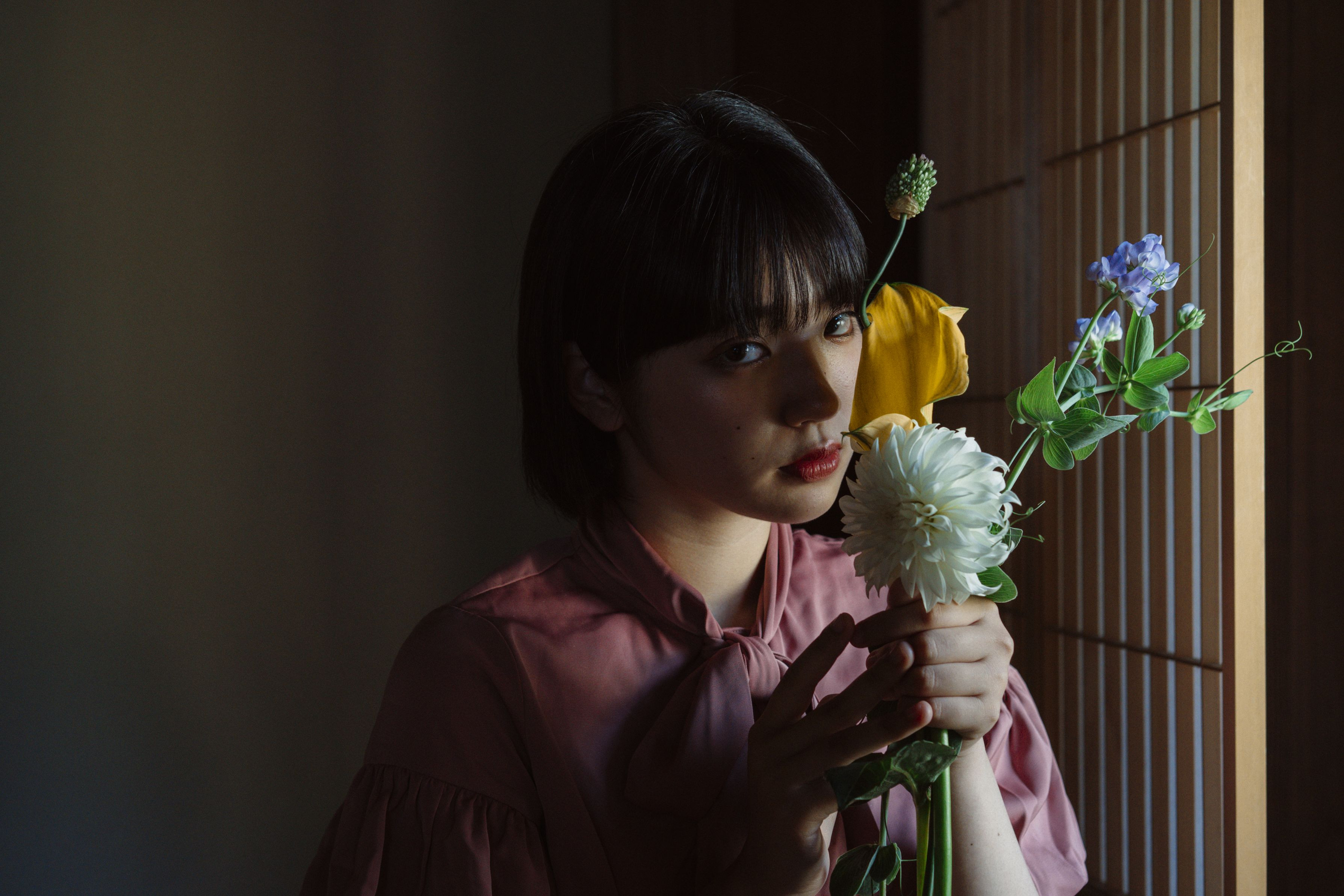 花と人、陰影。