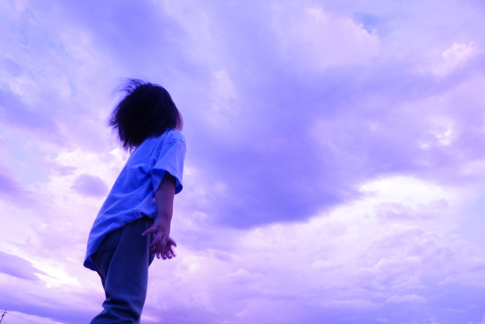 家の外で夕焼けを撮っていると、息子もやってきて一緒に空を見上げました。