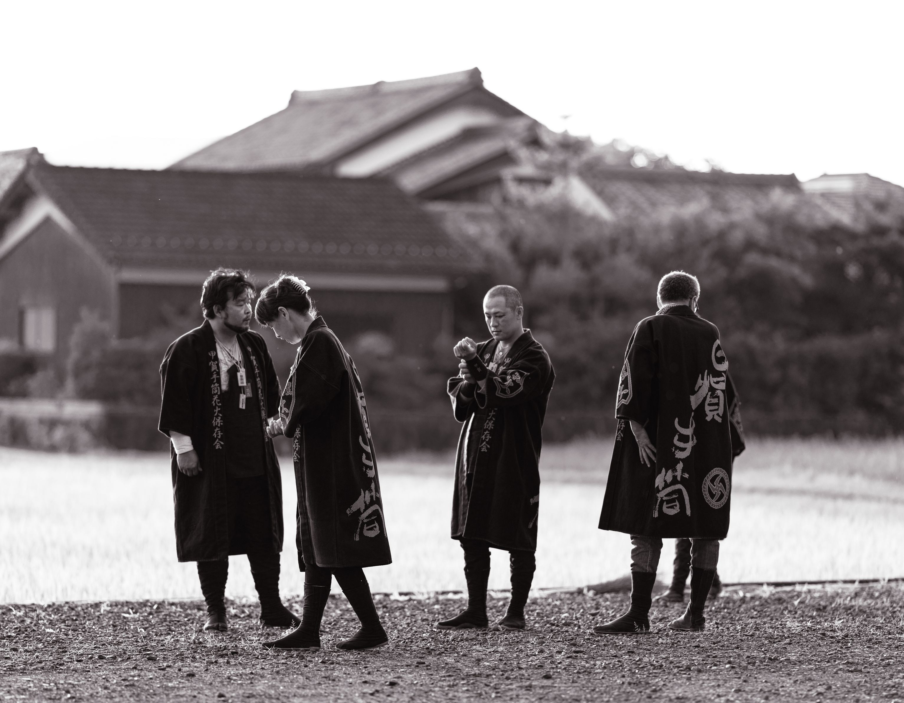 甲賀手筒花火師のみなさん。 始まる前、それぞれがイメージを調整しておられるように見えた。