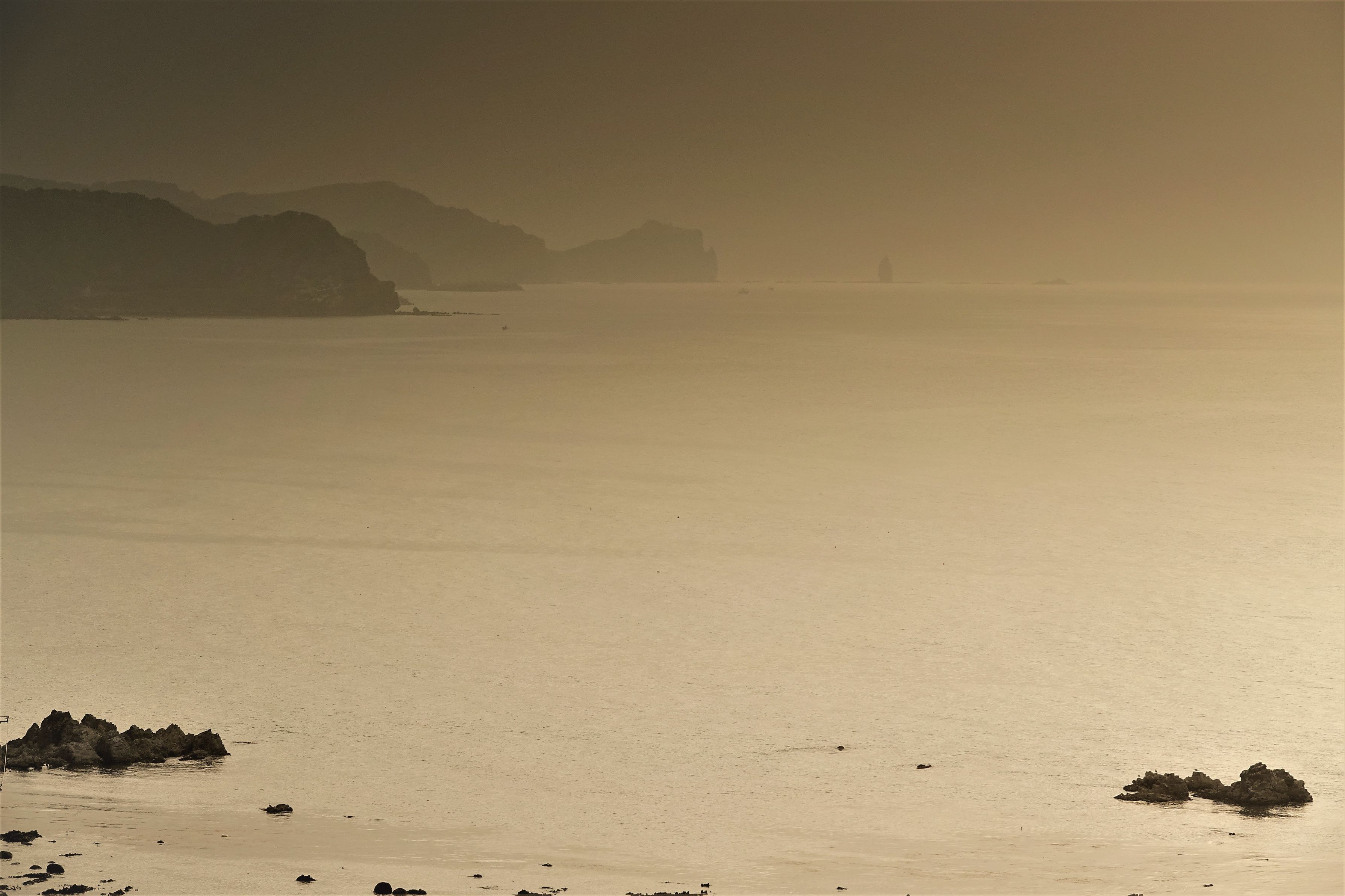 製品情報>My Sony>αcafe>夕陽に煙る神威岬(山岳一歩さん)
