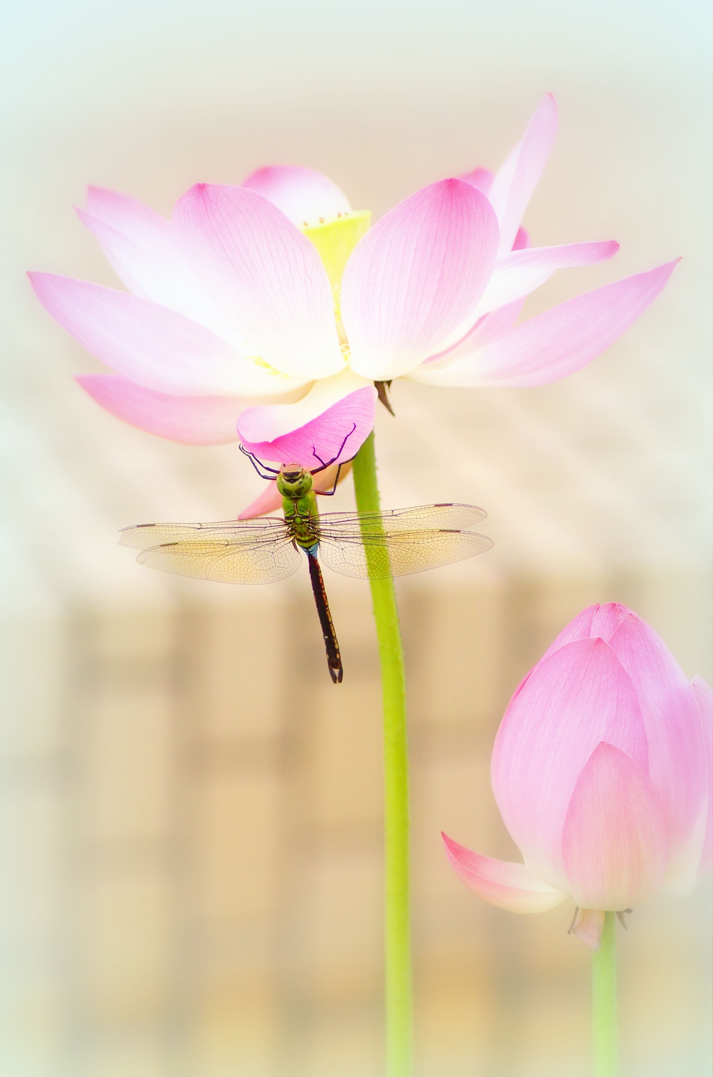 ハスの花に停まっているのはギンヤンマです。