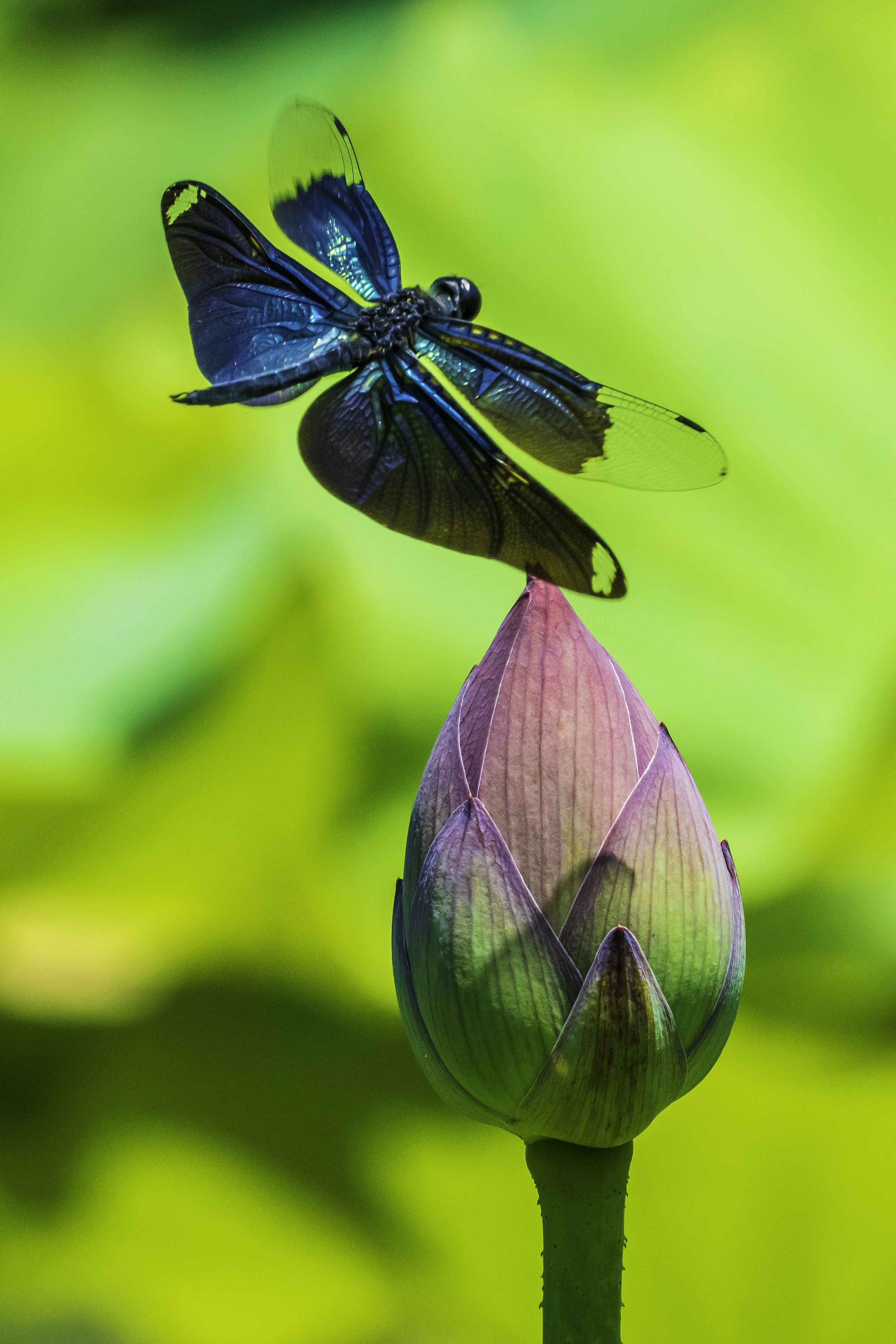 蓮池を飛翔するチョウトンボ(オス)