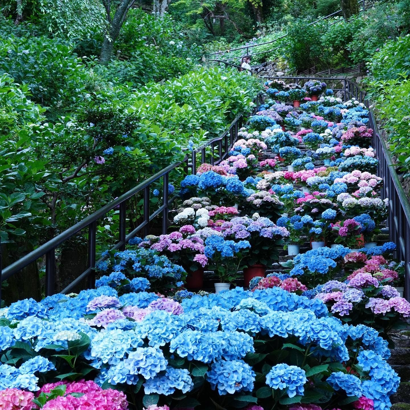 奈良の長谷寺の紫陽花です。階段に並べられた紫陽花は圧巻でした。