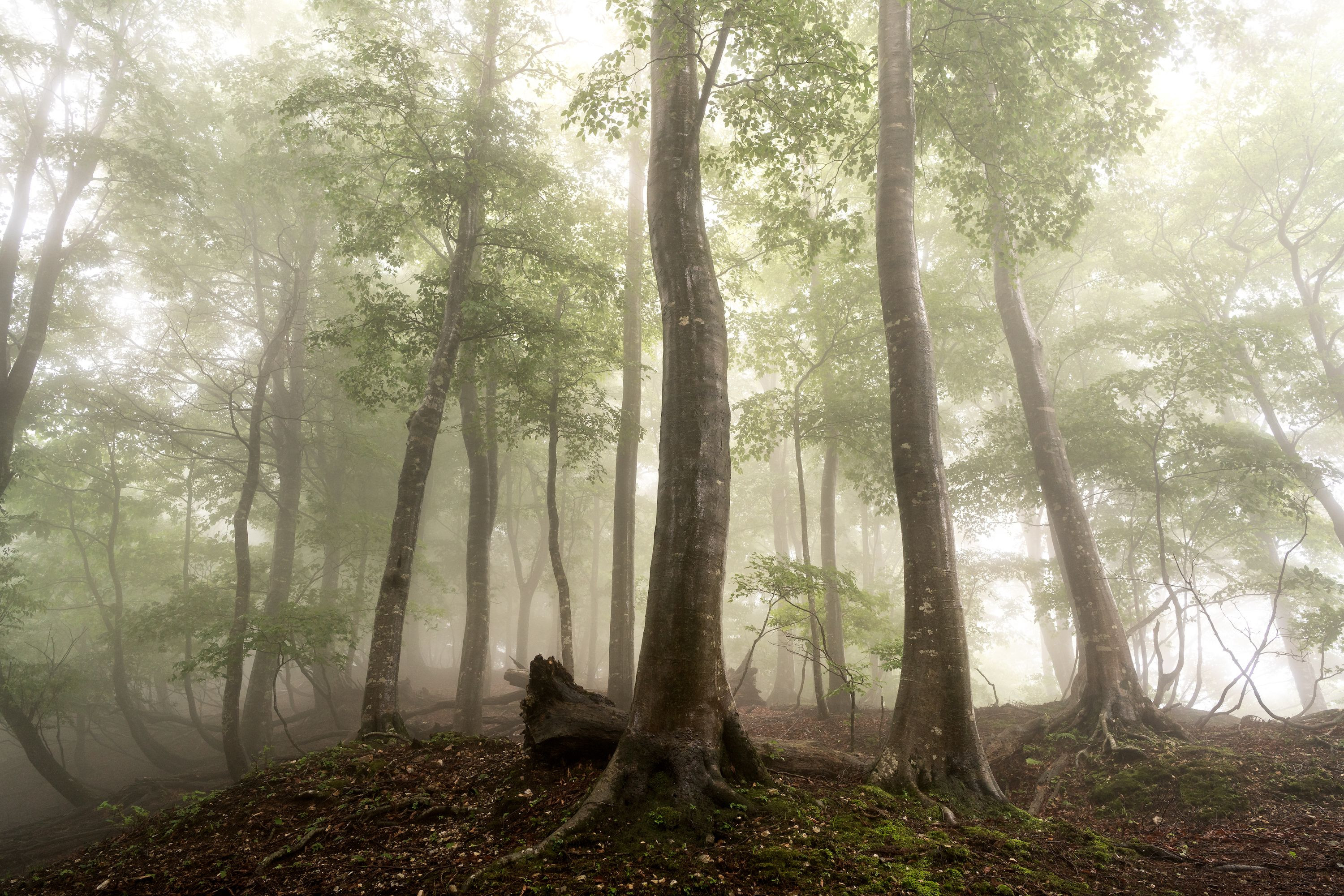 ブナの木は大好きな被写体の一つです。 霧に包まれるブナの森はとても幻想的です。熊の怖さもありますがこの幻想的な空間は癒されます。 使用レンズ:ZEISS Batis 2/25