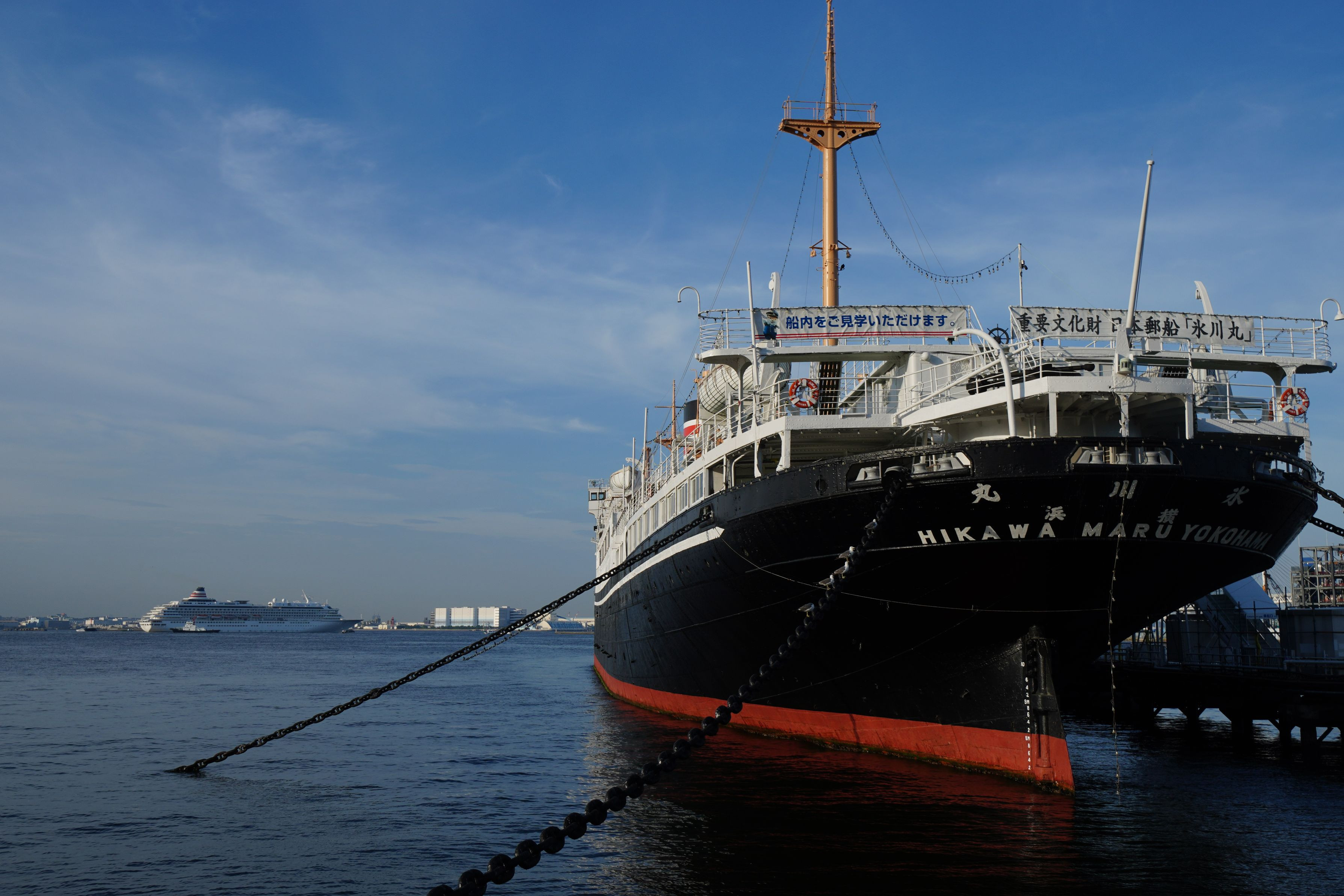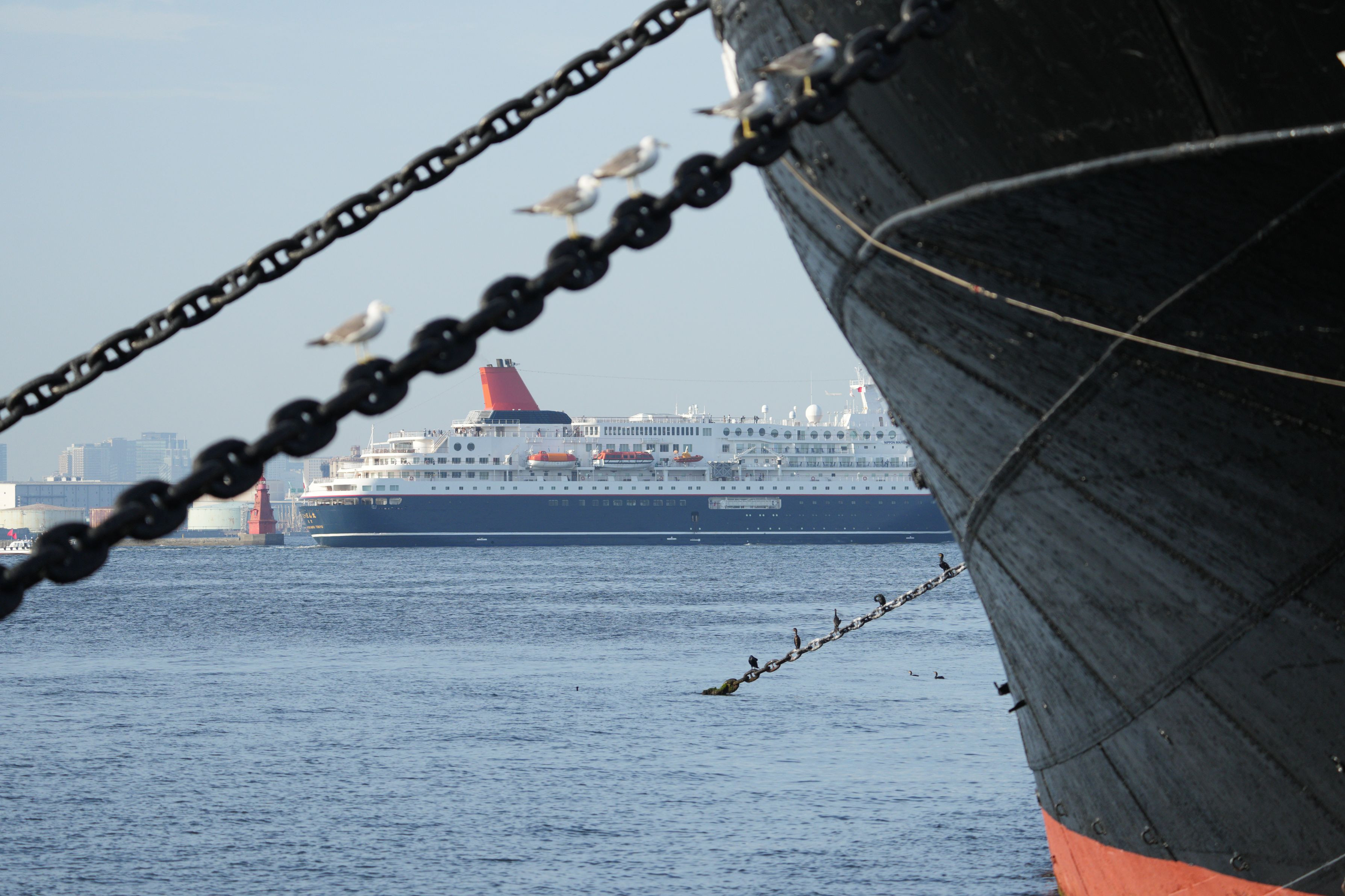 17時頃、にっぽん丸と飛鳥Ⅱが大桟橋から出港しました。