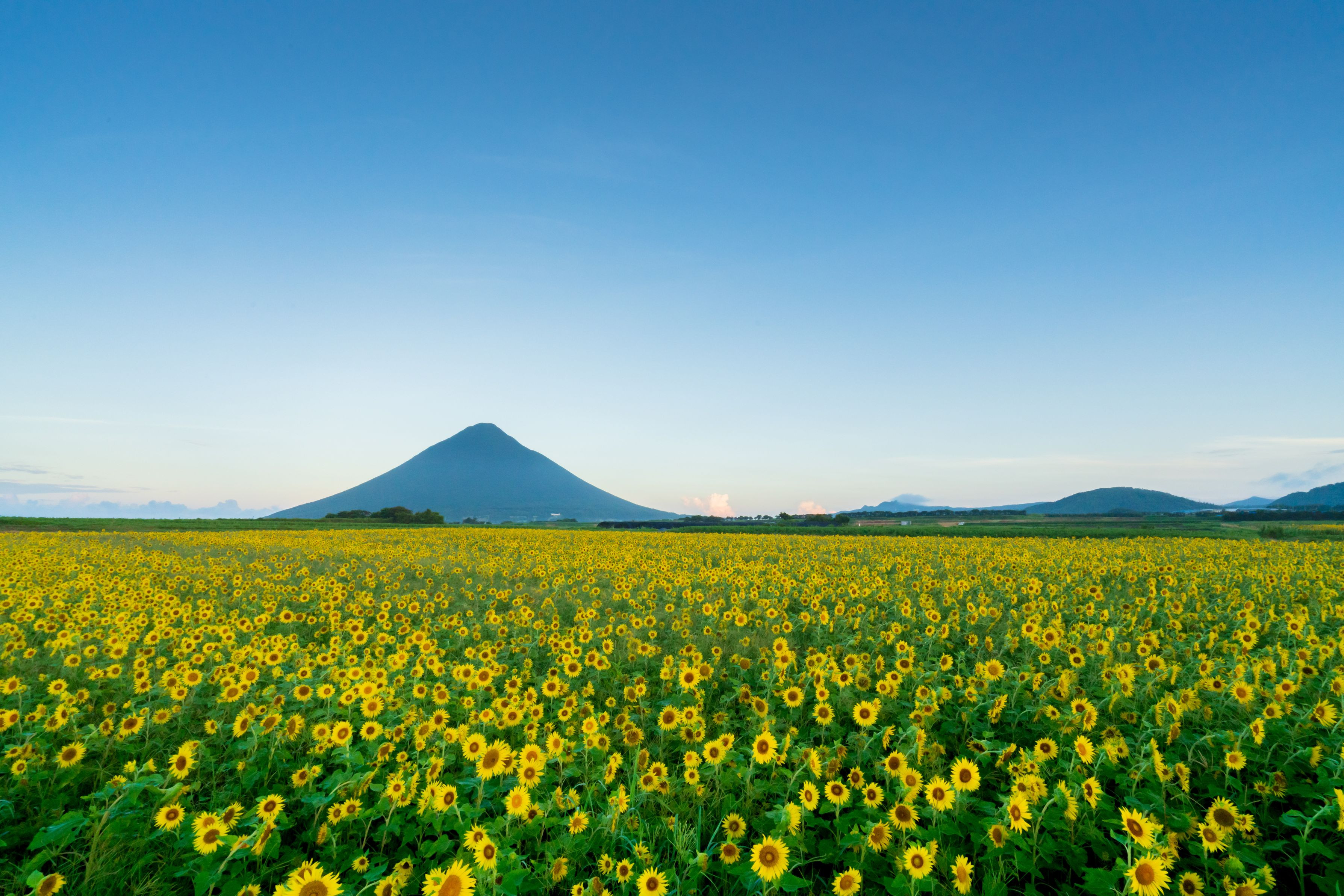 真夏の薩摩富士とひまわり