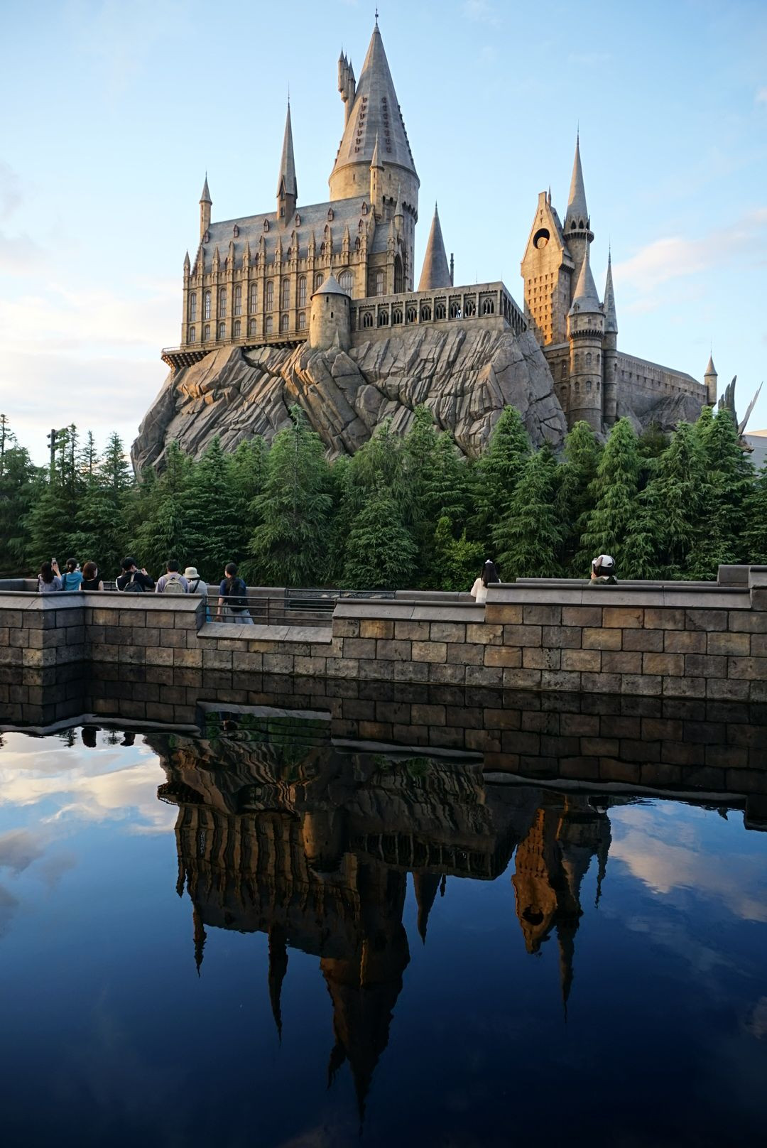 水面に映るホグワーツがキレイで撮影した一枚。肉眼で見るより水面のホグワーツに魔法がかかってそうに撮れていてびっくり! ディメンターいそう、、、