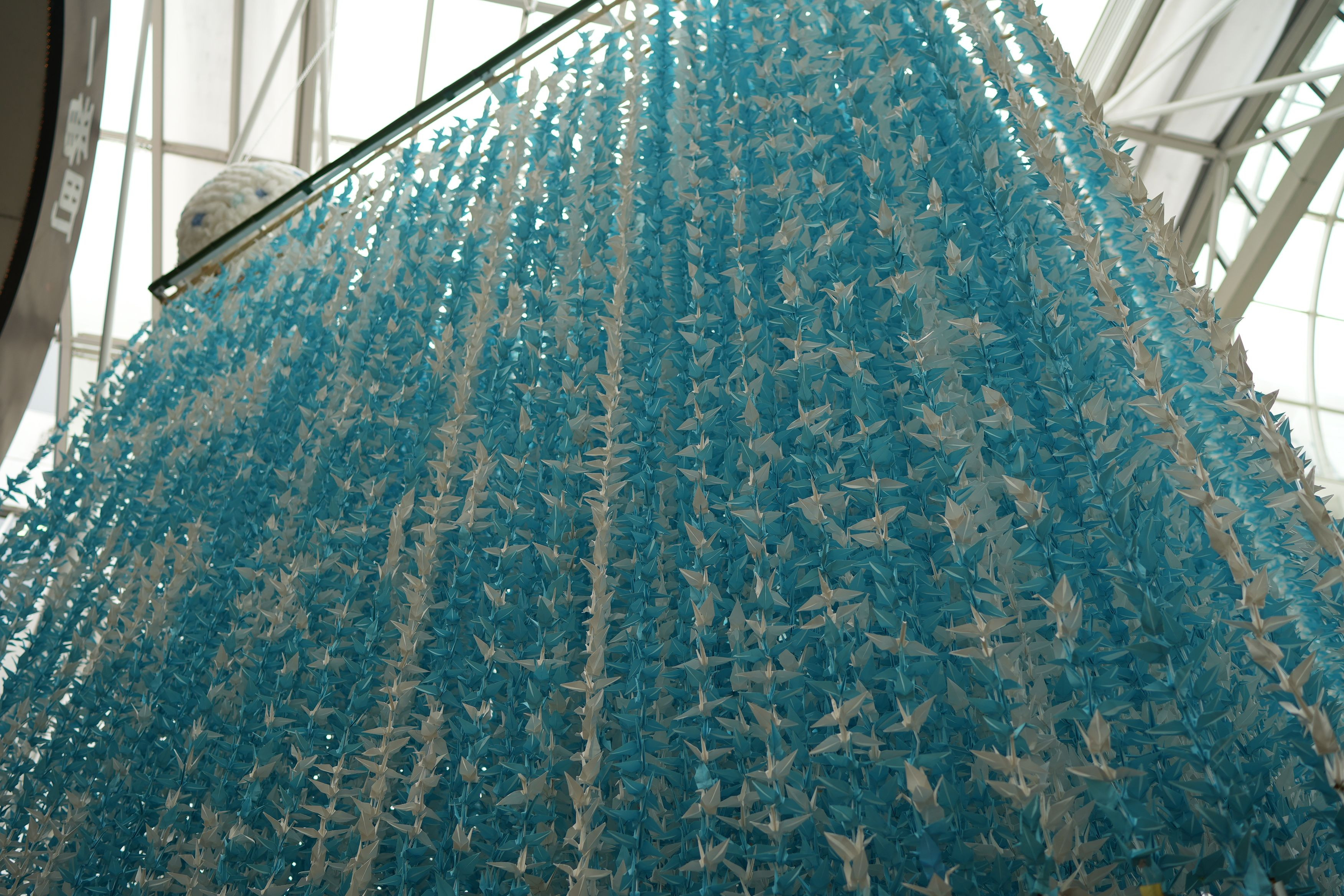 新型コロナで開催中止の続いた東北夏まつり、今年は青森ねぶた、秋田竿灯、岩手花笠、福島わらじ祭りに続いて宮城七夕が開催され、毎年七夕展示の街の中間にこの千羽鶴が展示されます。