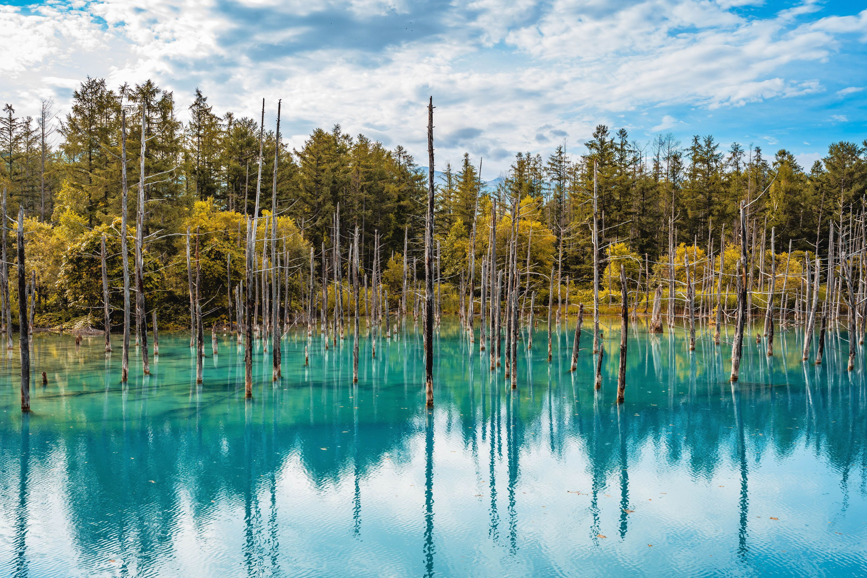 Blue Pond in Hokkaido Japan.