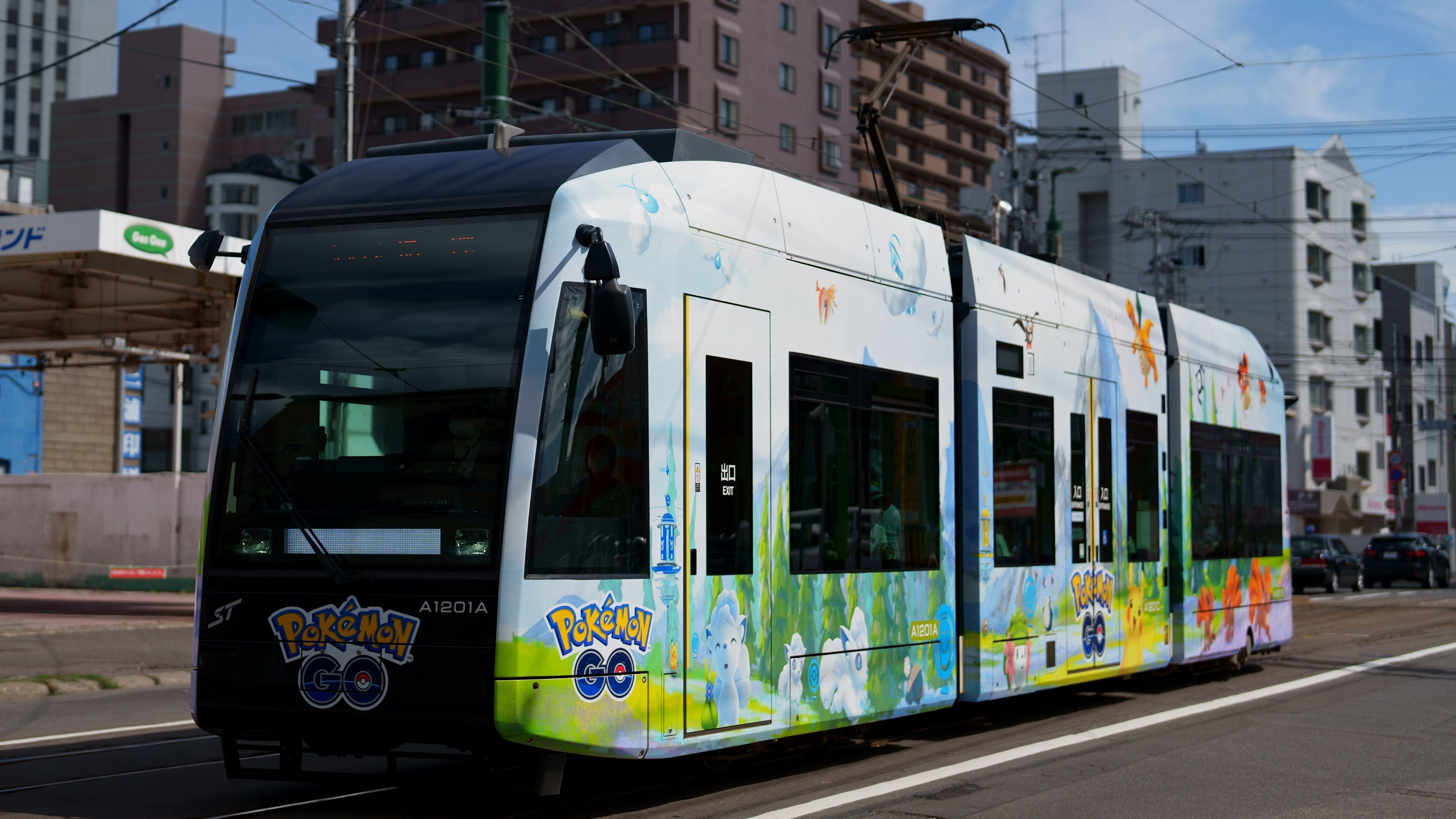 札幌市電の『Pokémon GO』のラッピング電車です(2022年8月7日撮影)。