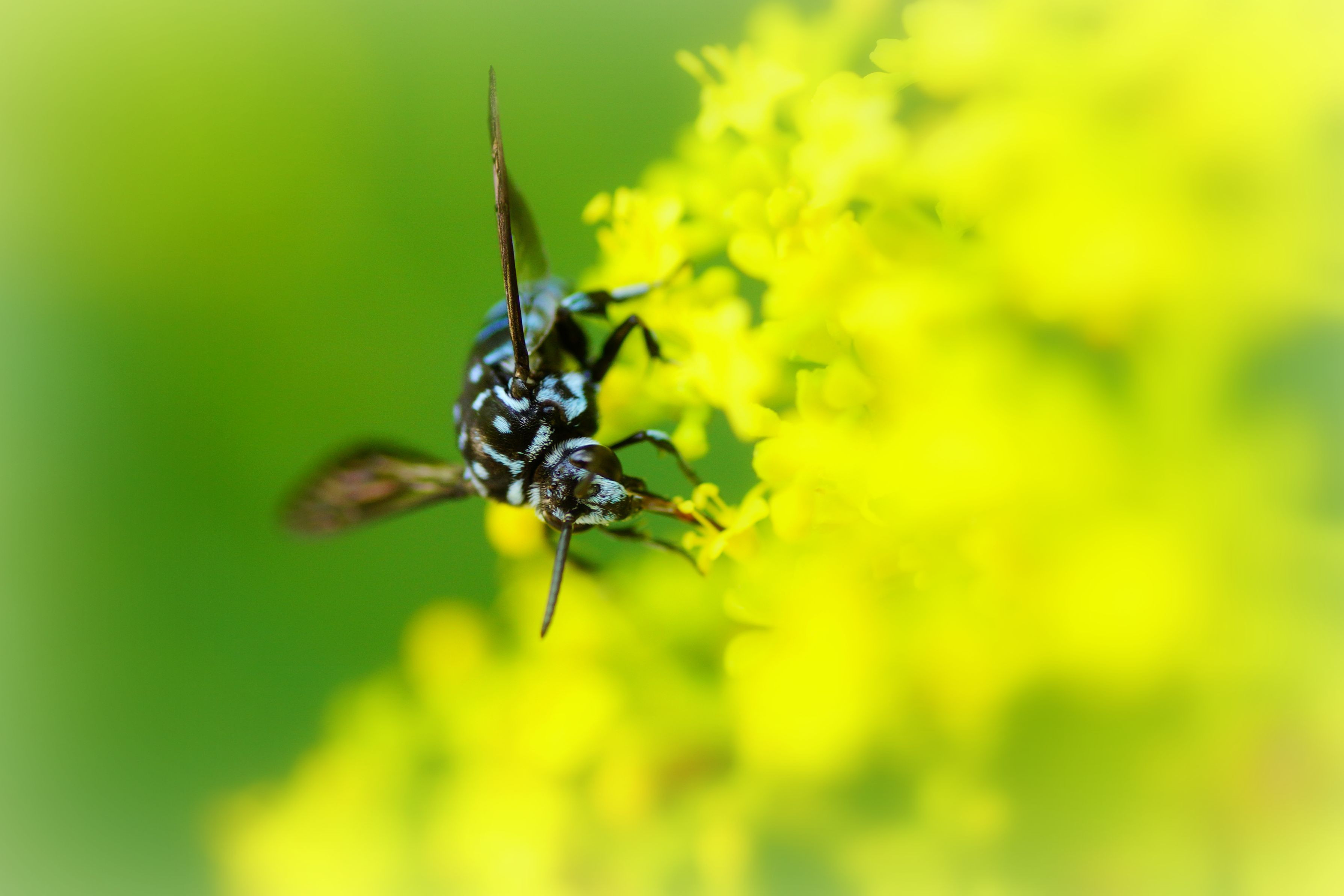ブルービーの愛称で知られているルリモンハナバチが オミナエシにやって来ました。(*^^*)