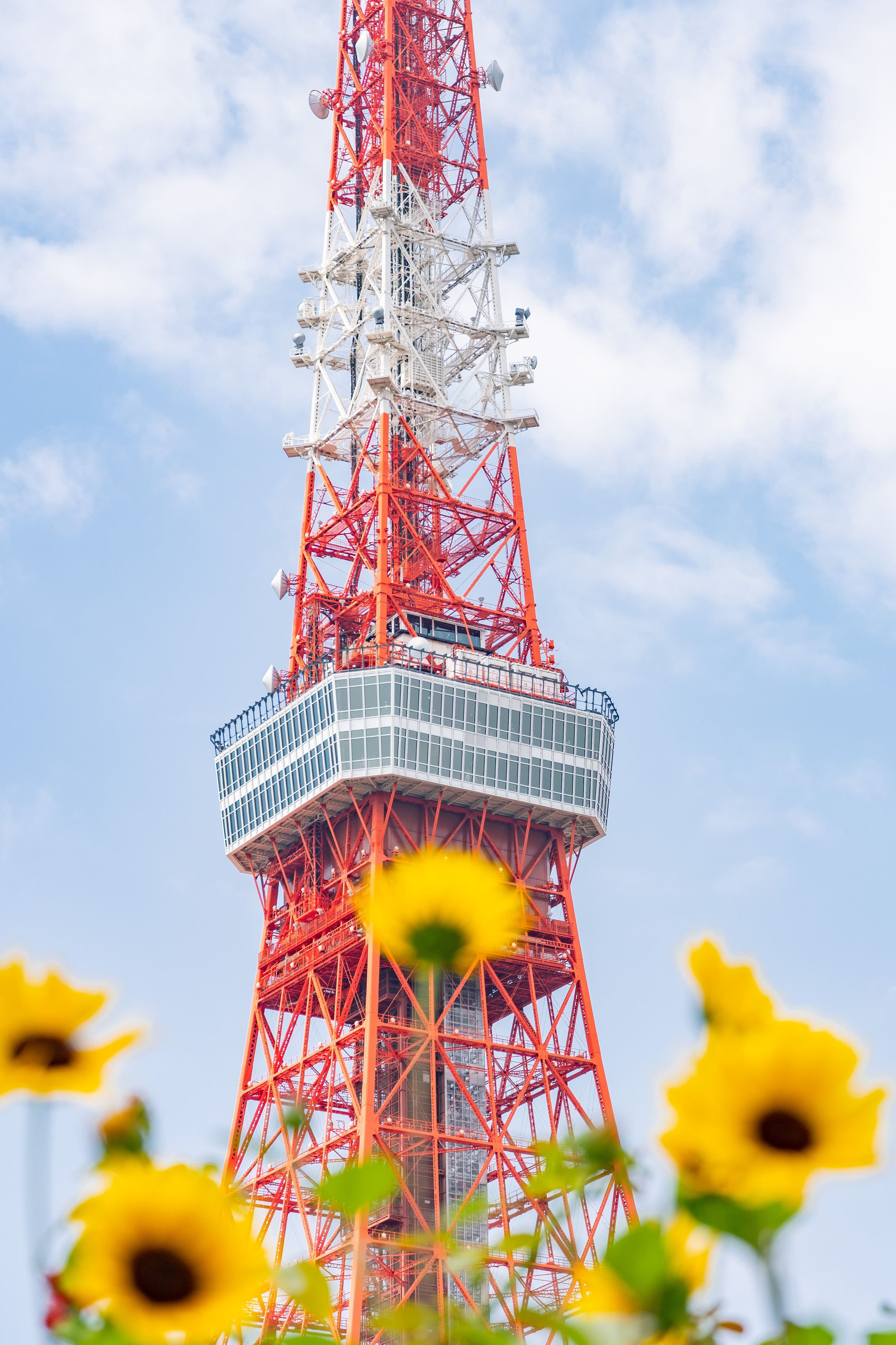 前のひまわりたちが高い東京タワーだったり空を向いて頑張って成長しようとしている瞬間