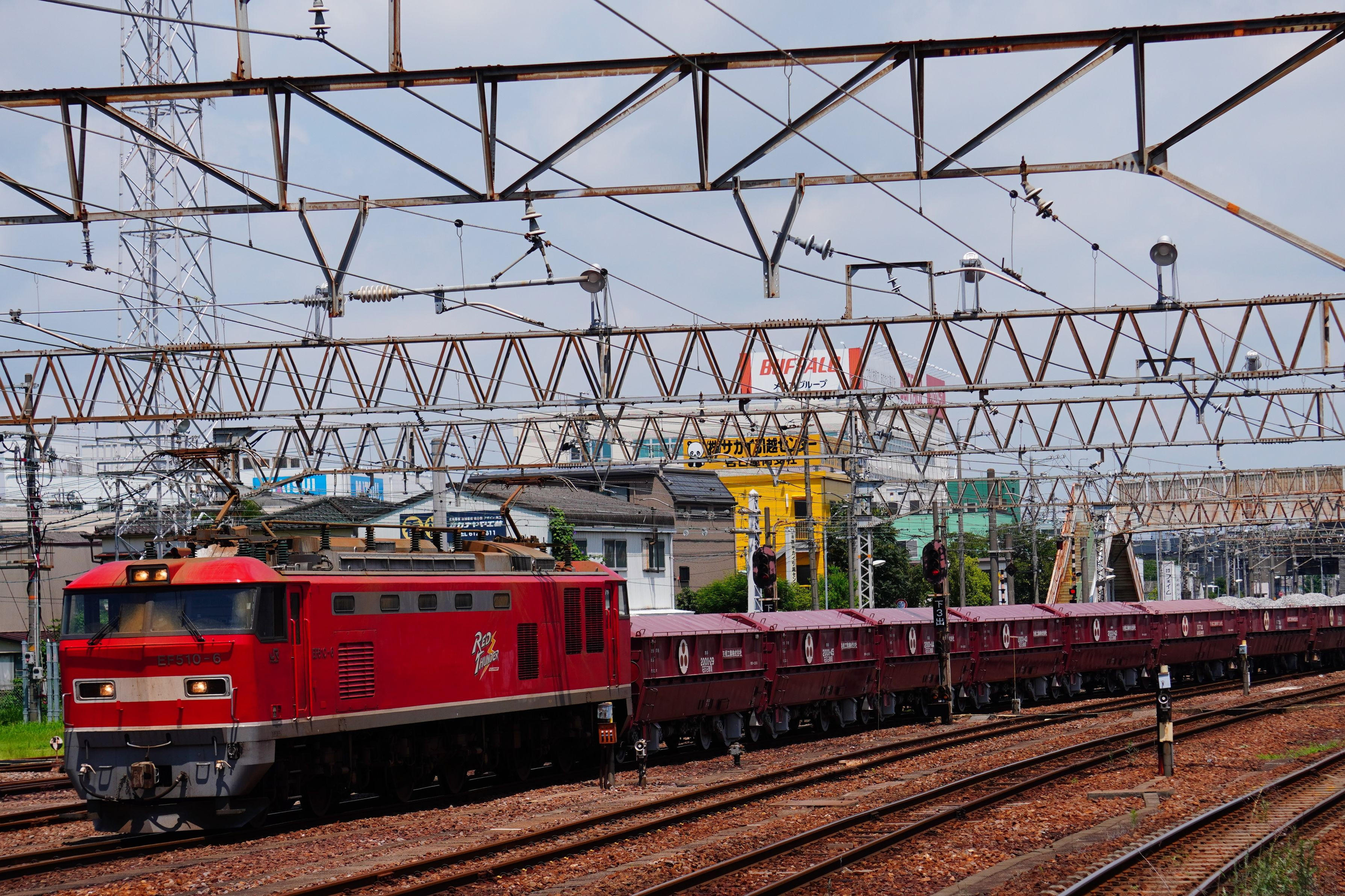甲種輸送を撮るために笠寺駅に来ていたら、赤ホキを運んでいるレッドサンダーがやって来ました 以前は名古屋ターミナルに向かって走っている「レッドサンダー」を見かけましたが、最近見かけなくなり気になっていました。・ 東海道線 笠寺駅