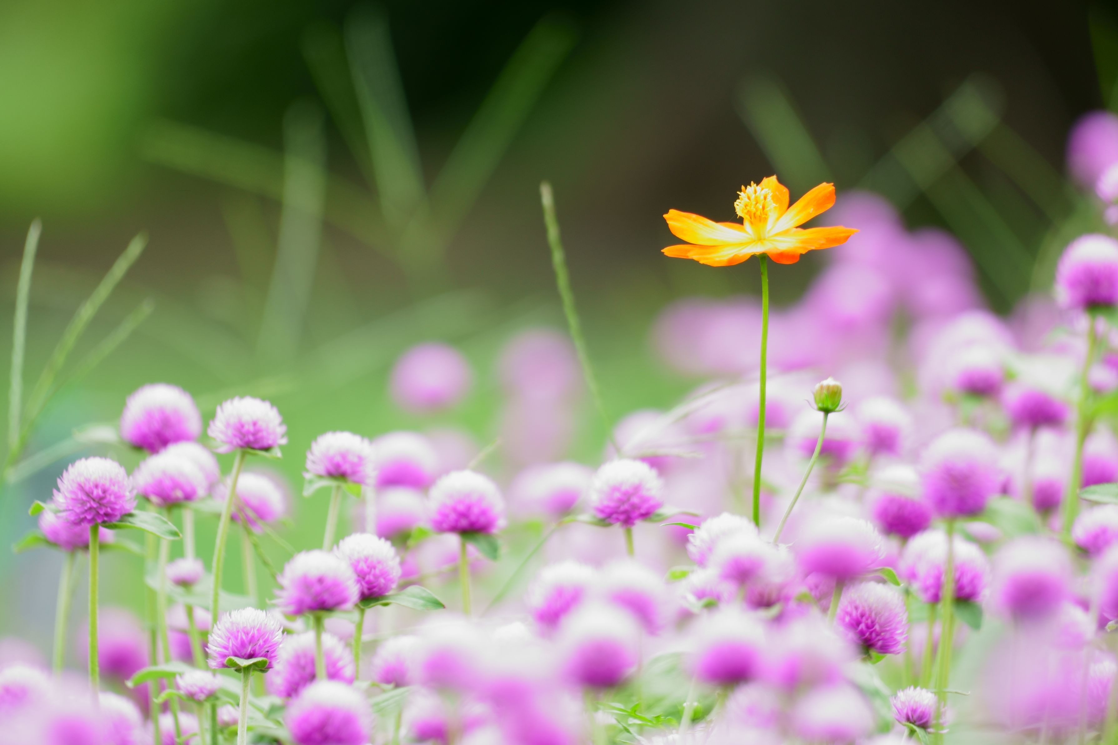 千日紅の花壇に、一輪のコスモスを見かけました。