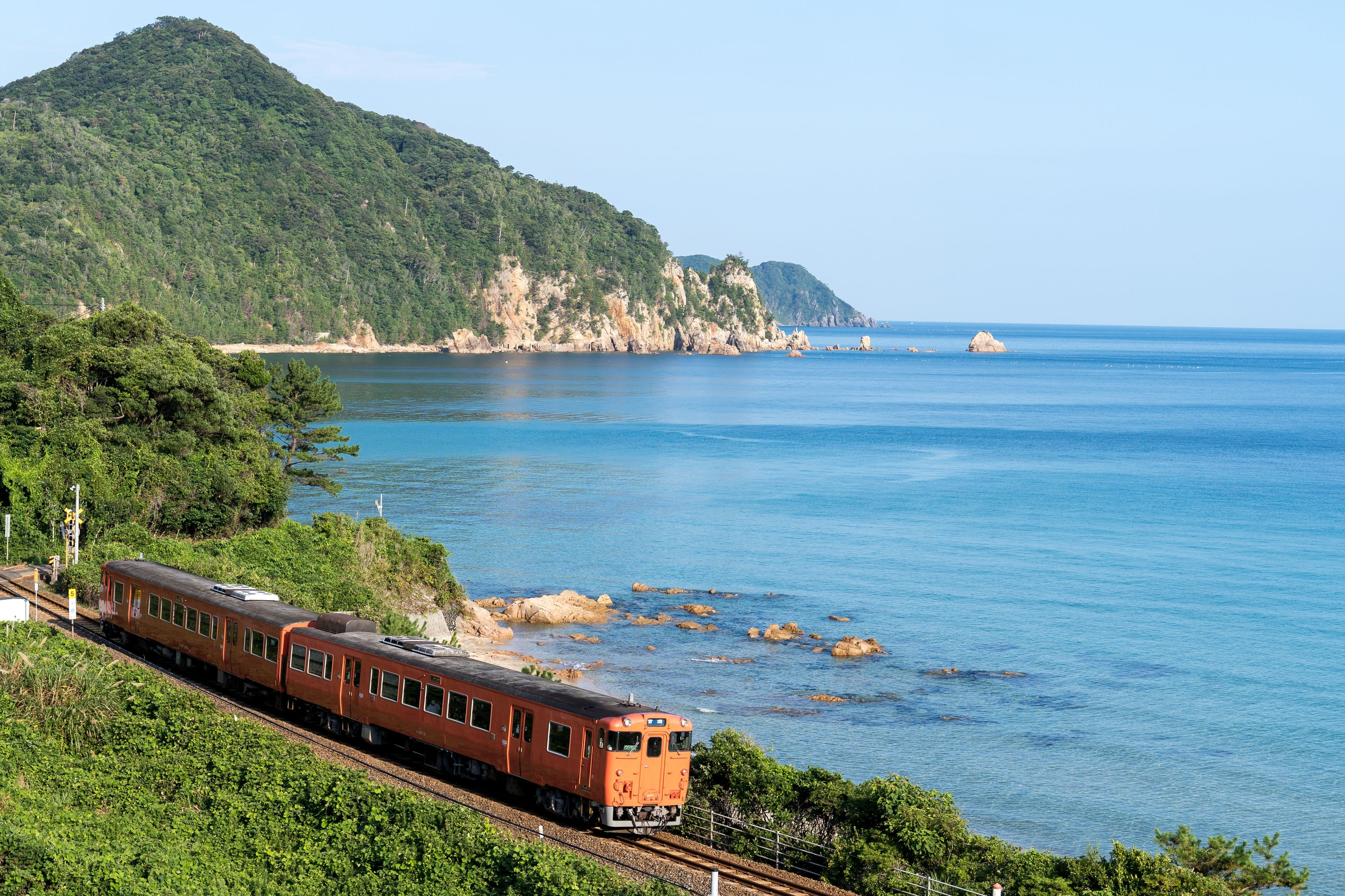 静かな夏の日本海をバックに撮影しました。