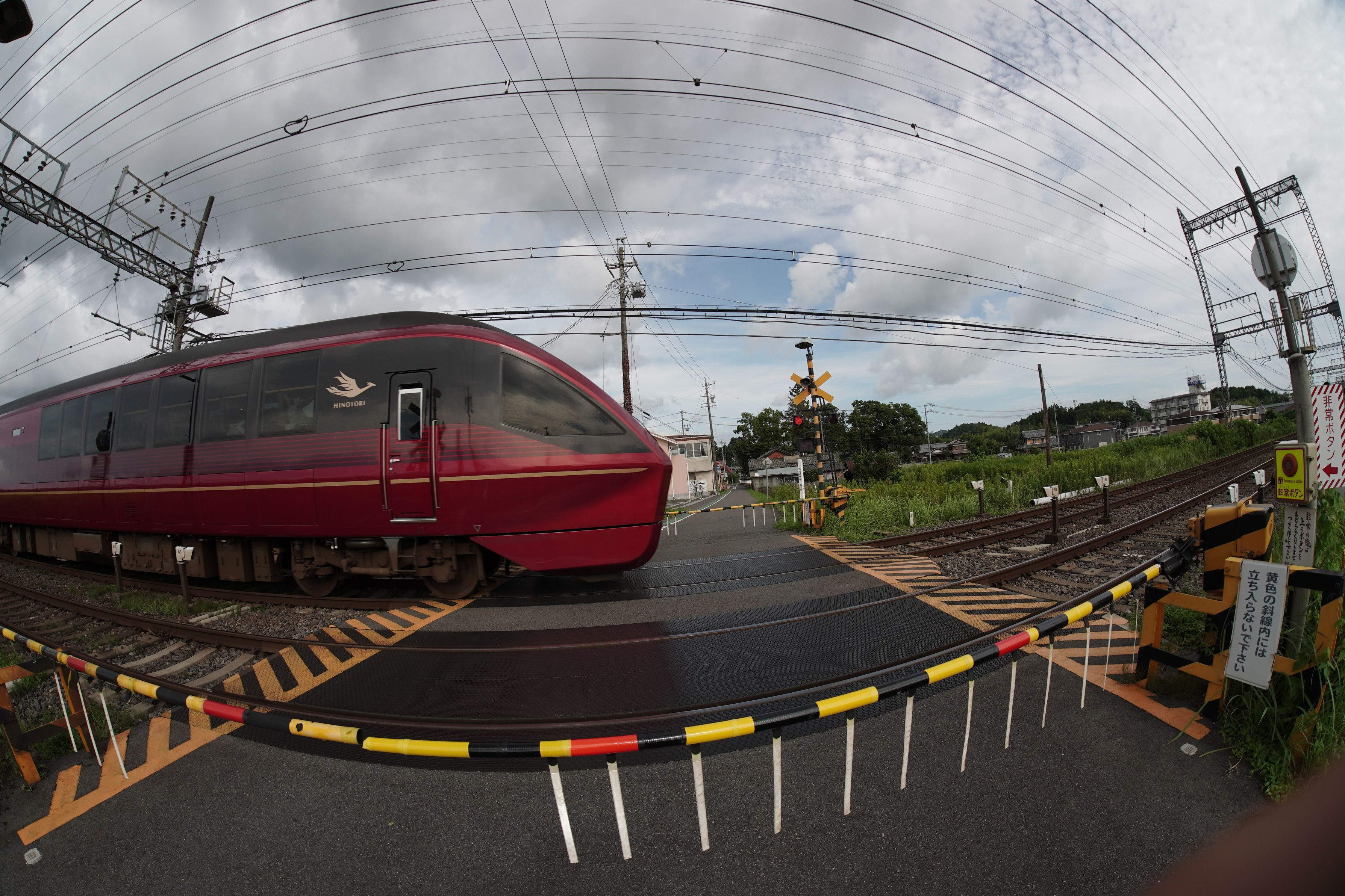 普通の踏切でもレンズをかえると面白いシーンに見えました。