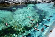 プールに浮いての毛づくろい 気持ちよさそうです。