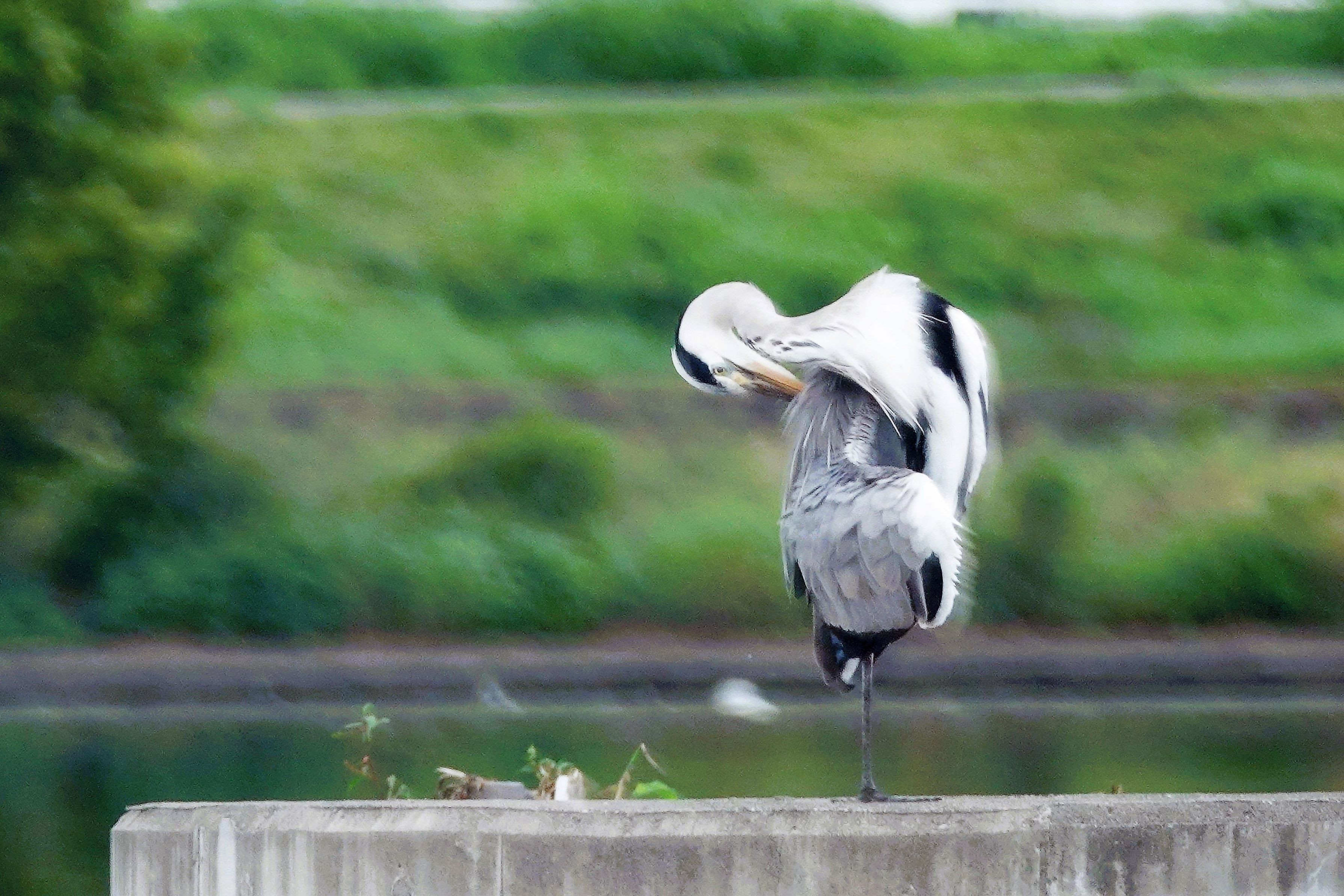 1本足で 羽繕い