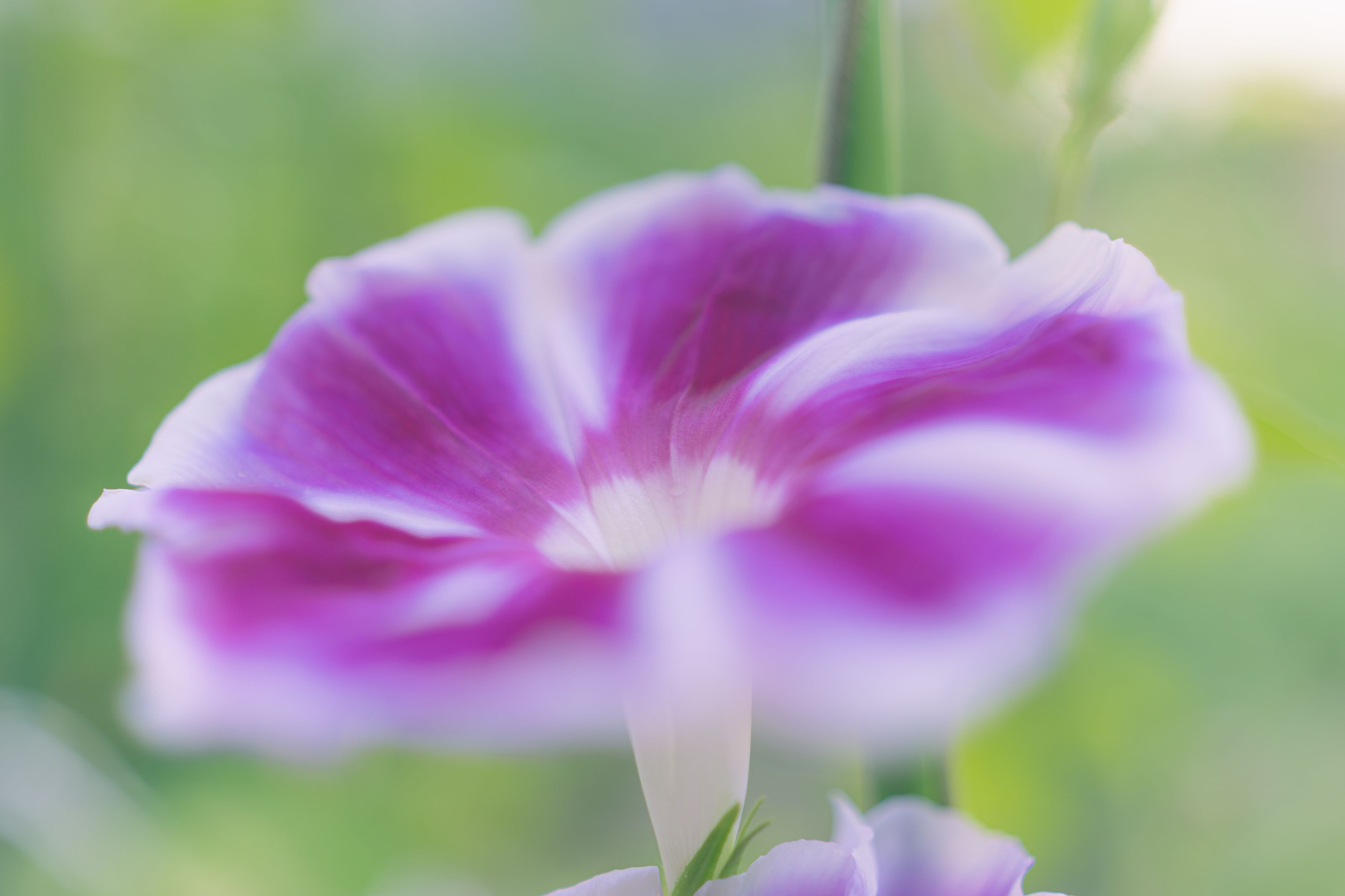 朝日が差し込むといっぱいに開いた朝顔。