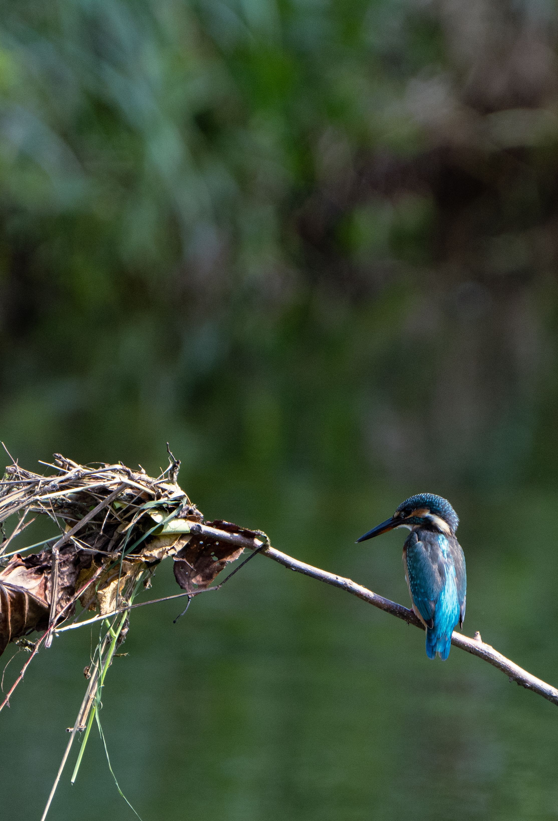 1時間ほど大雨が降った翌日、水面から80cmぐらいの高さの止まり木に引っかかった枯葉。改めて水の怖さを痛感。
