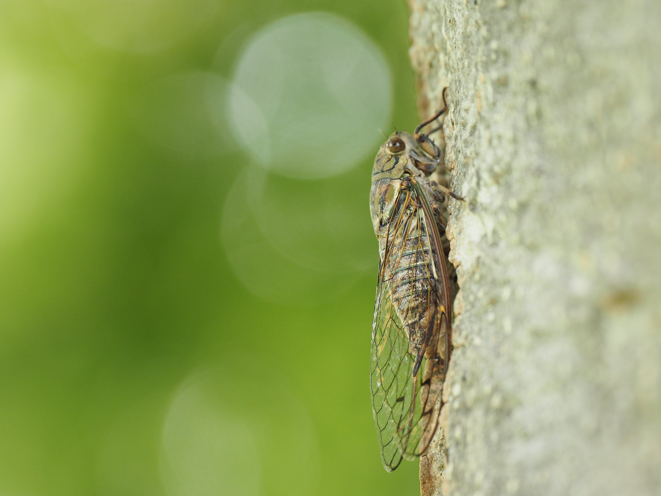 関西生まれにとってミンミンゼミは山に行かなければ逢えないセミですが、関東では街中で普通に見られるセミです。透き通った羽の美しさが伝われば嬉しいと思える一枚です。
