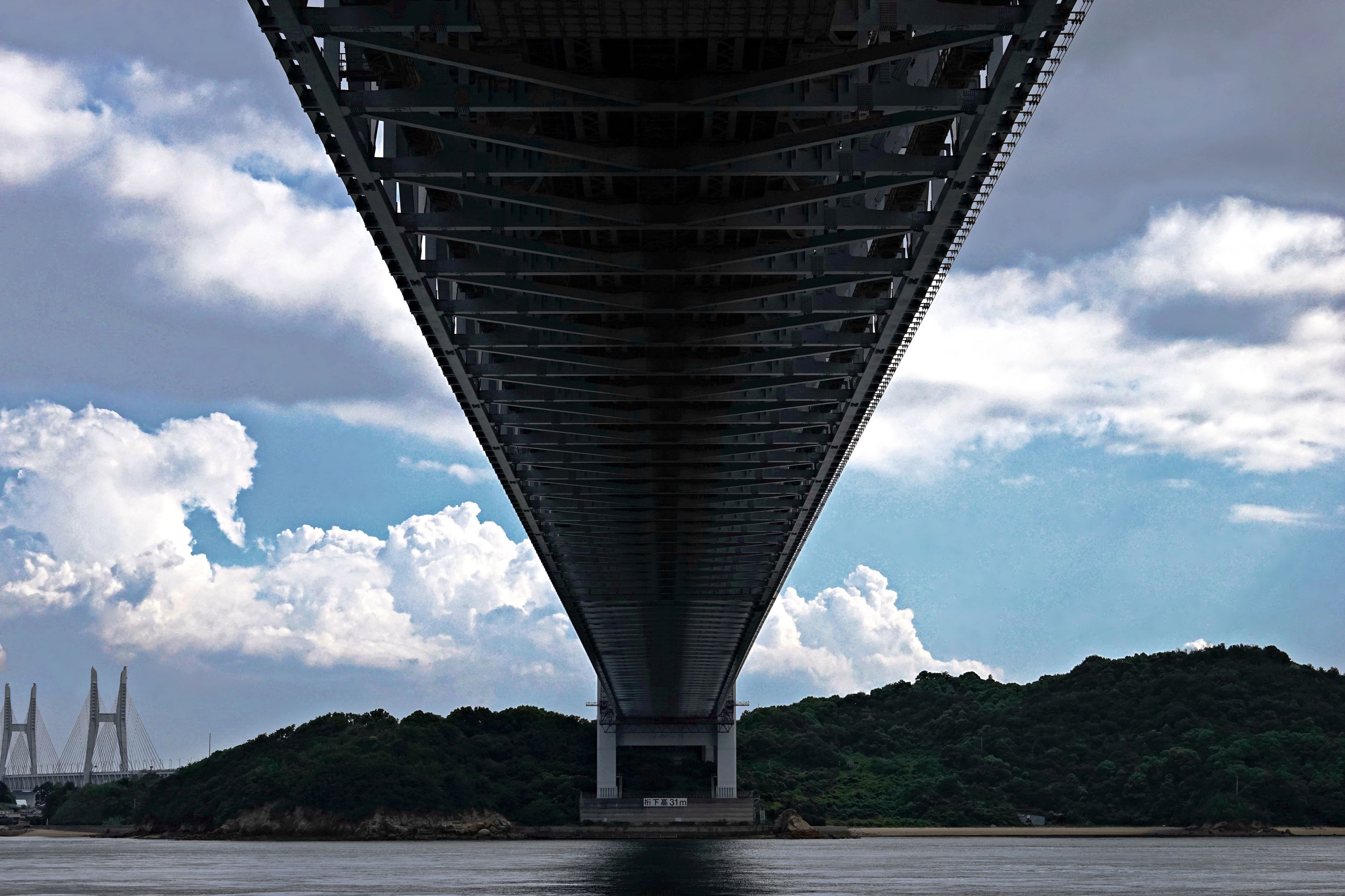 以前に瀬戸大橋に行った時の1枚です。真夏の午後でした。瀬戸大橋の陰に隠れて撮影しました。橋の裏側もつぶれないように、夏空を意識して撮影しました。