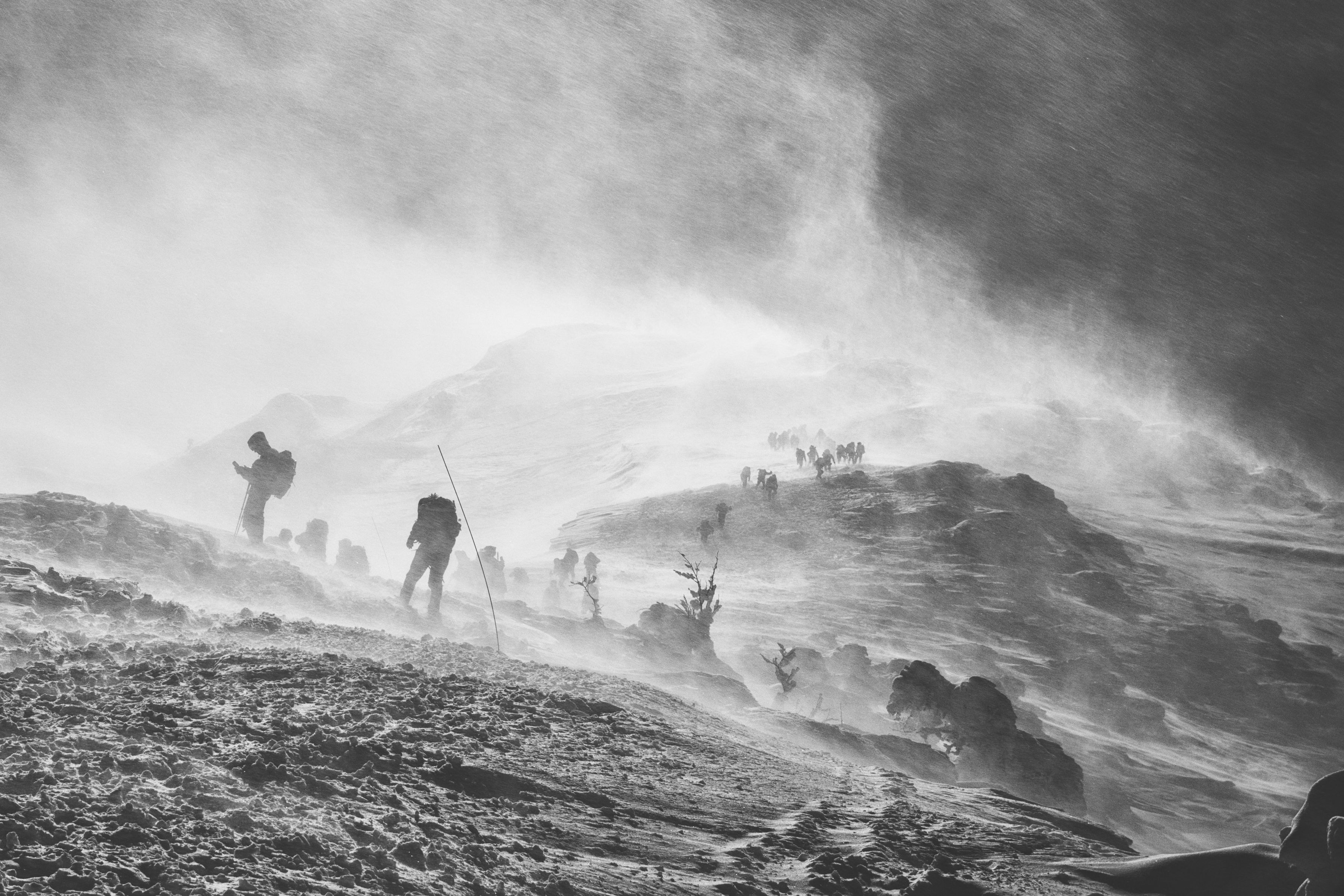 伯耆大山冬山にチャレンジしましたが、その日は日本海から吹き付ける強風により勇気ある撤退。 撤退前に撮影した勇敢な登山者。 しかしながら、無理は禁物です。