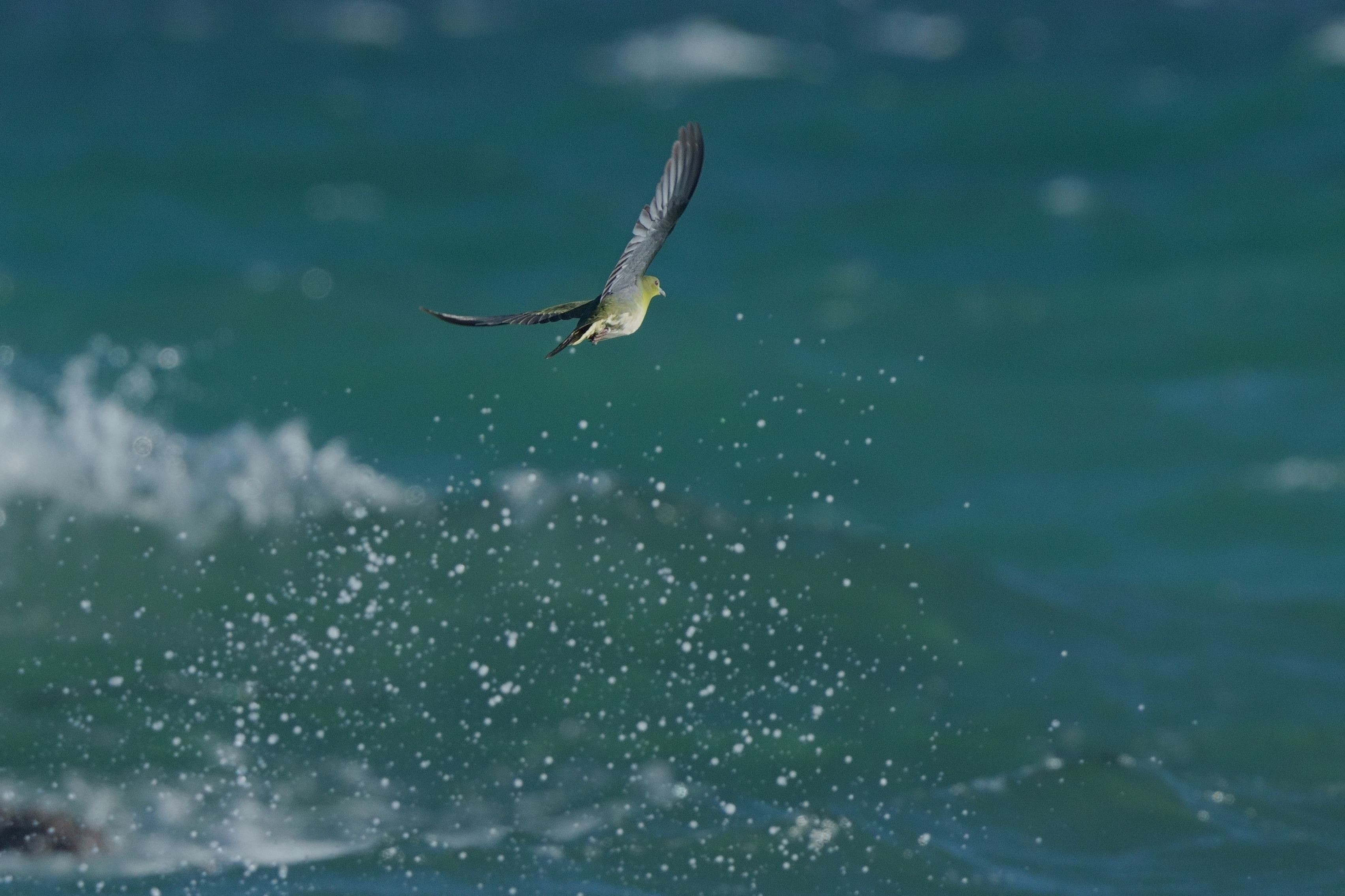 波しぶきを避けながら飛ぶ姿のコントラストが最高です。