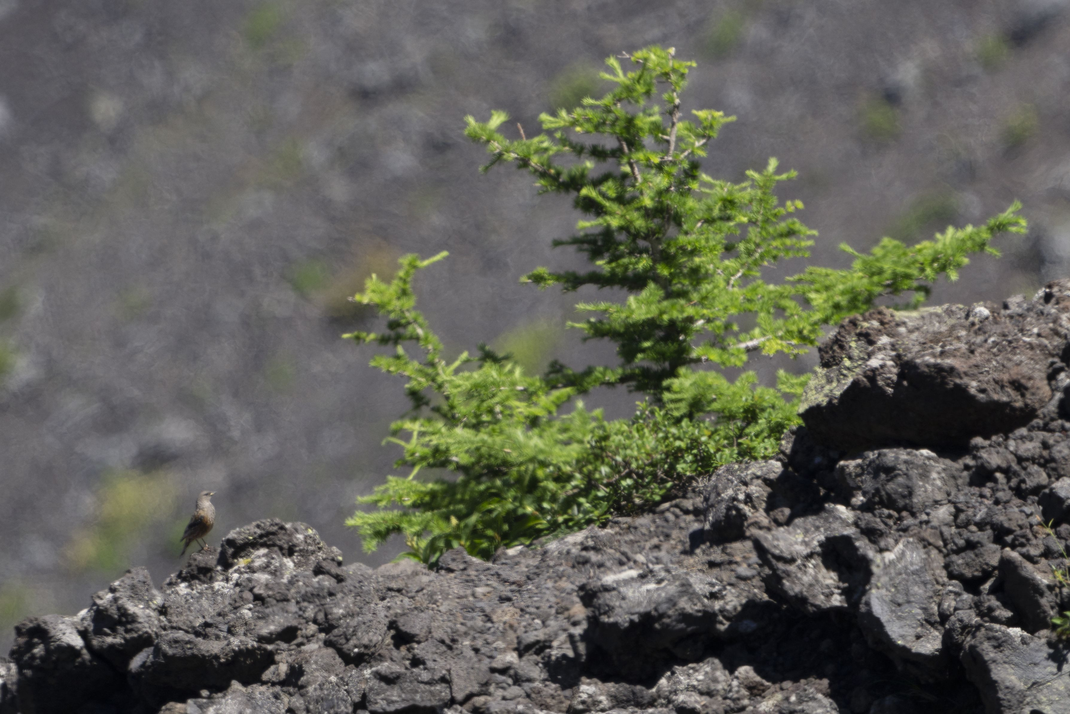 ライファ―の#イワヒバリ#さんに会うのが今年の課題の1つでした。日帰りで何とか行ける標高の高い火口遠征の1回目は、天気が良すぎて風もなく、遠くは陽炎でどうにも撮影になりませんでした。何を思ったか1羽が突然私のすぐ後ろの岩影に飛んできましたが、近すぎてもろもろの設定変更しないと撮影出来ず、無念の2枚目のみ。その後2回(2回目は昨日)遠征するも全く会えず、来年に課題の持ち越しです。