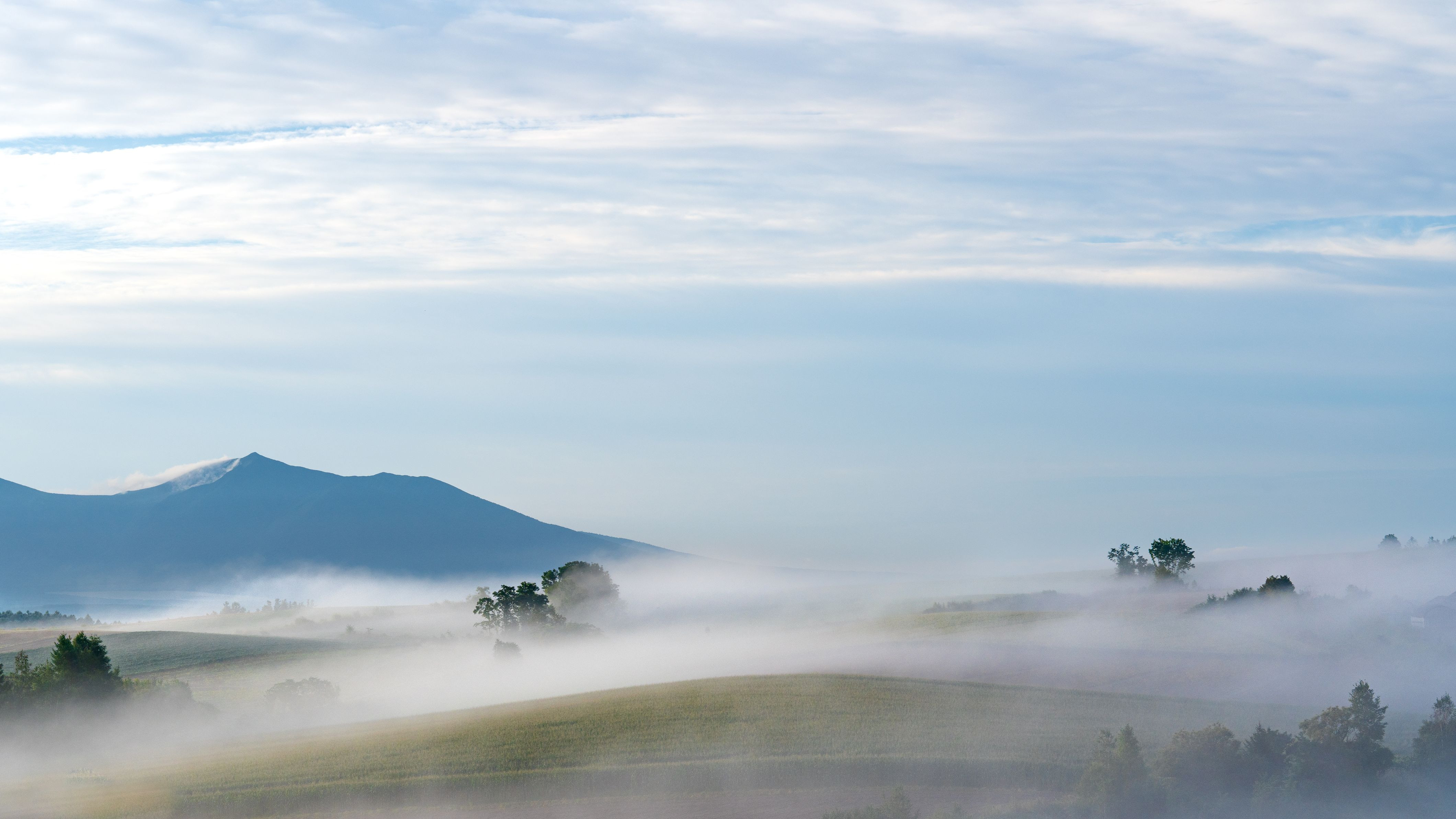 美瑛・留辺蘂の高台からの一コマ。 丘の上を滑るように流れる朝もやが素敵でした。 カメラマンさんもたくさん☆^^☆