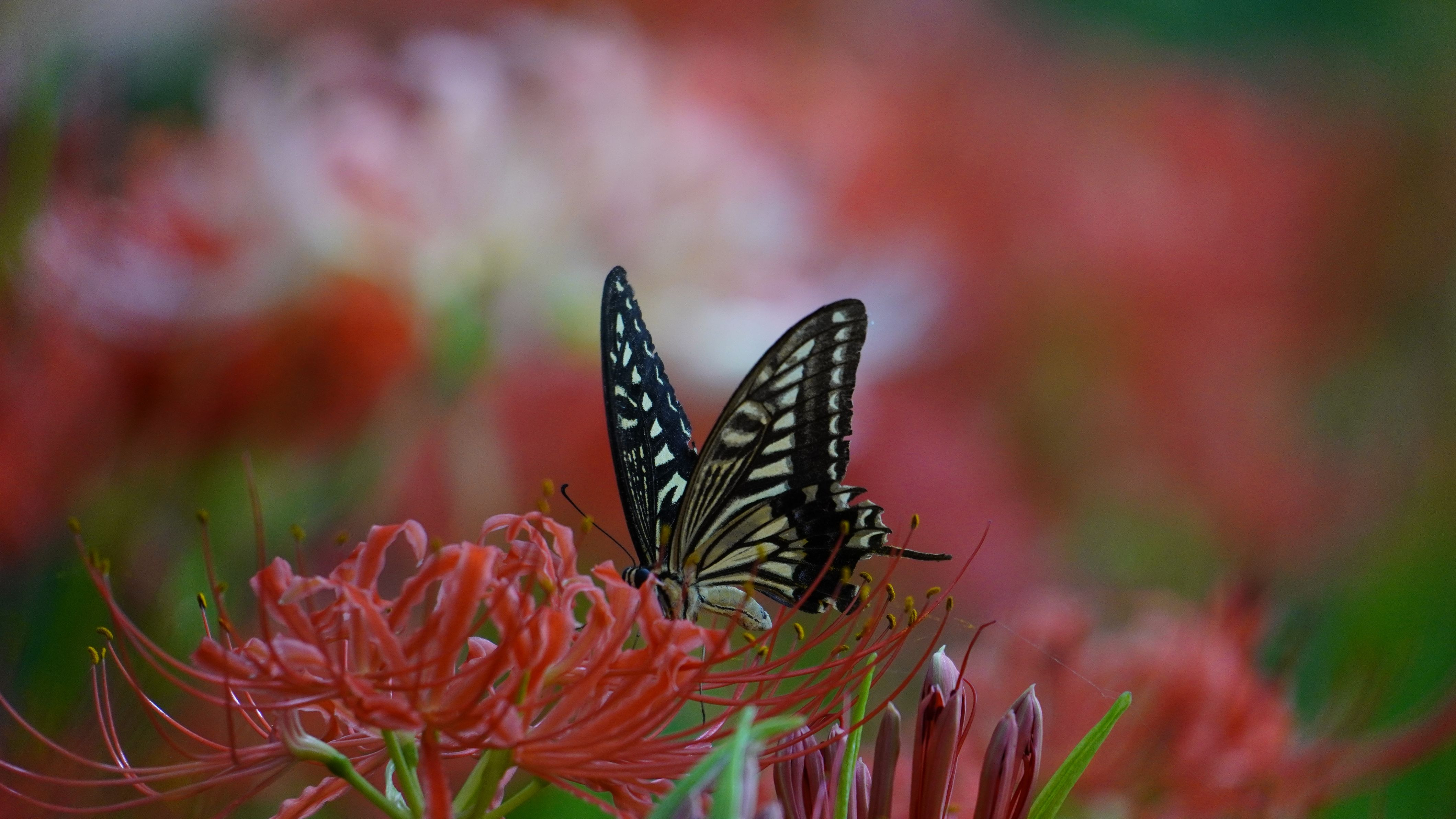 彼岸花を撮影中に蝶々が綺麗に止まってくれました。