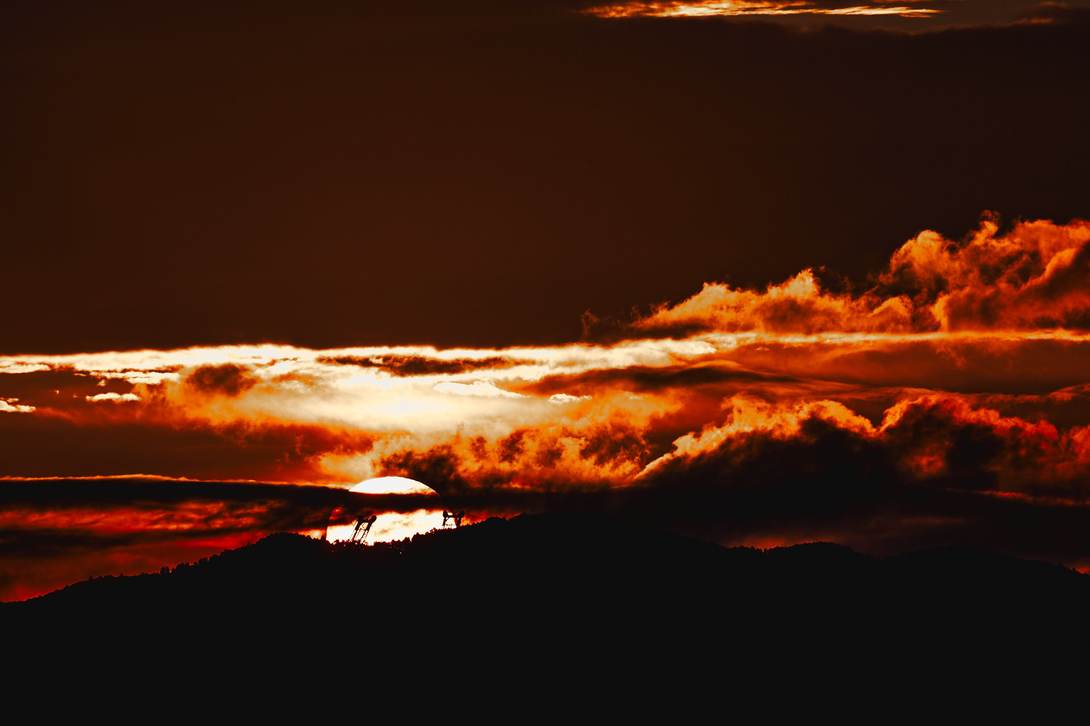 ベランダからの朝焼け、少しの間、赤く染まりました。