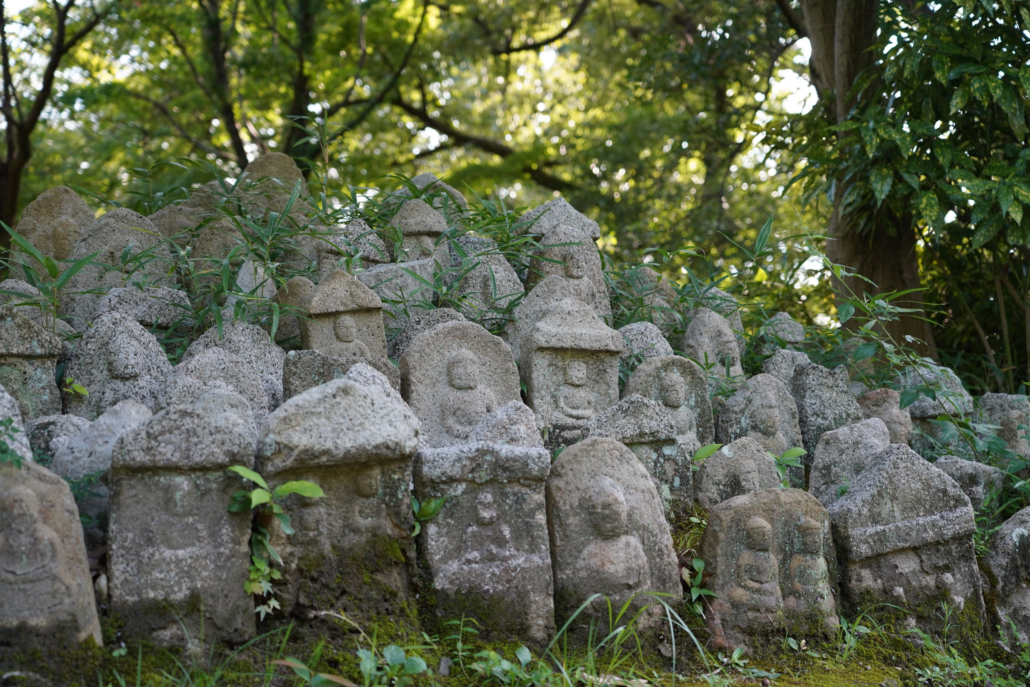 様々なお顔で微笑みかける野の仏たち、大部分は阿弥陀如来像だそうです。