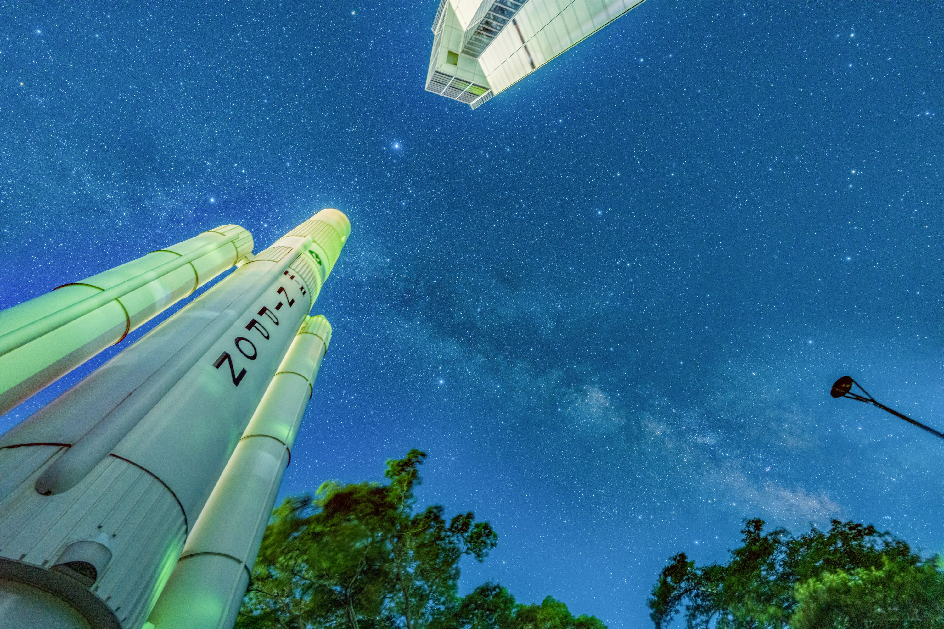七夕の季節に撮影したH2ロケットと天の川銀河の夏の大三角です。街灯りがあるところですが、空が澄んでいて星が綺麗でした。