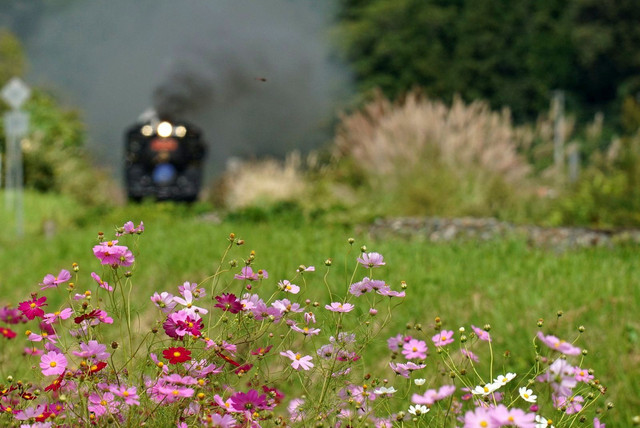 今回も掘り鉄ですみません。 コスモスを手前において前ボケと後ボケの2ショット。 みなさまはどちらがお好きですか? SL銀河、5年前の今ごろ撮影。2017.9.23 釜石線 土沢~晴山