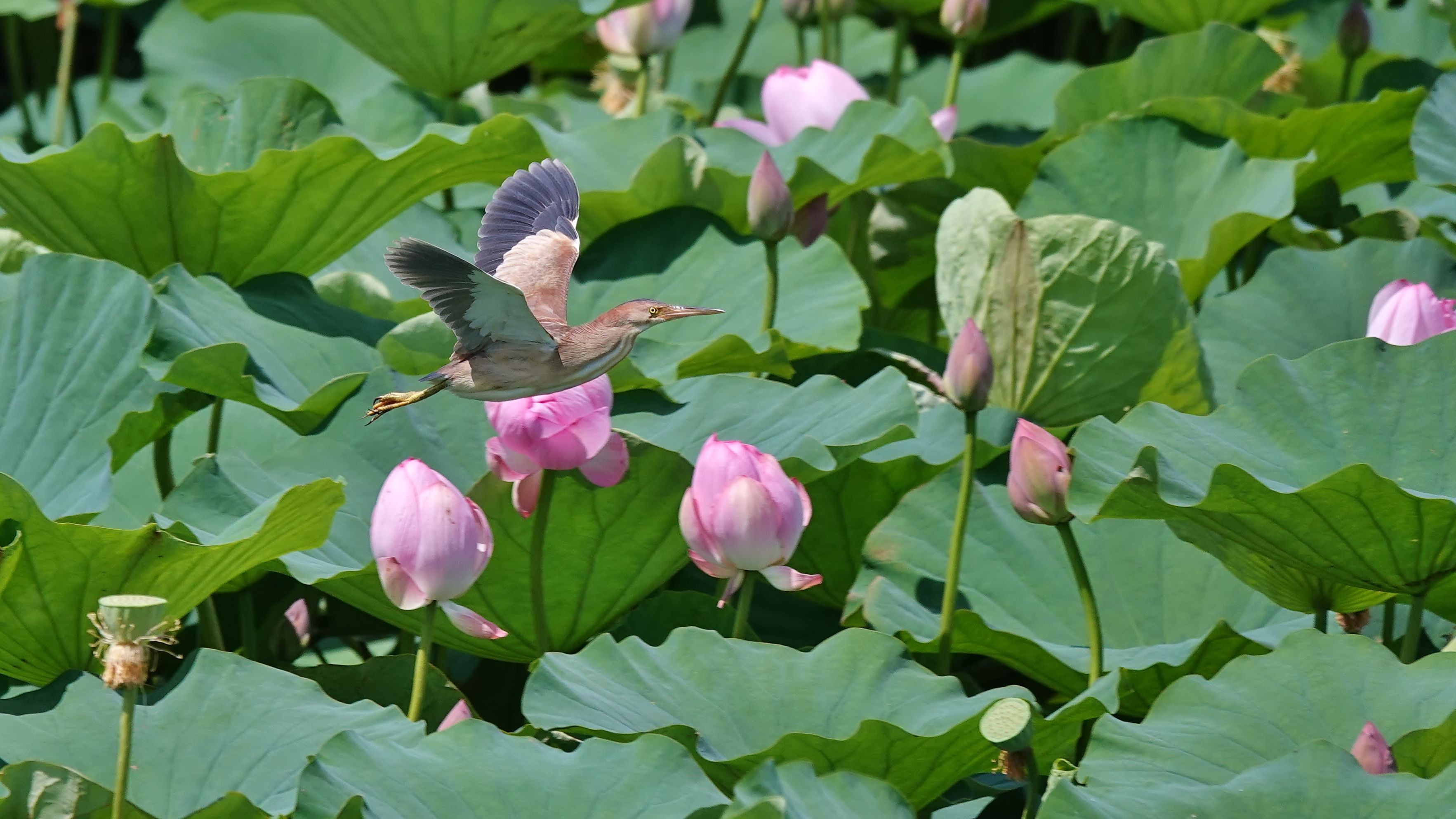 夏鳥のヨシゴイが蓮の花の上すれすれに飛ぶ姿を撮りたいカメラマンがたくさん集まる中、速い動きの鳥にピントが合わず花や葉に合ってしまいがっかりする人が多い。それでもαで簡単に撮れてしまって最高の気分。しばらくパソコンのデスクトップ画像にしていました。