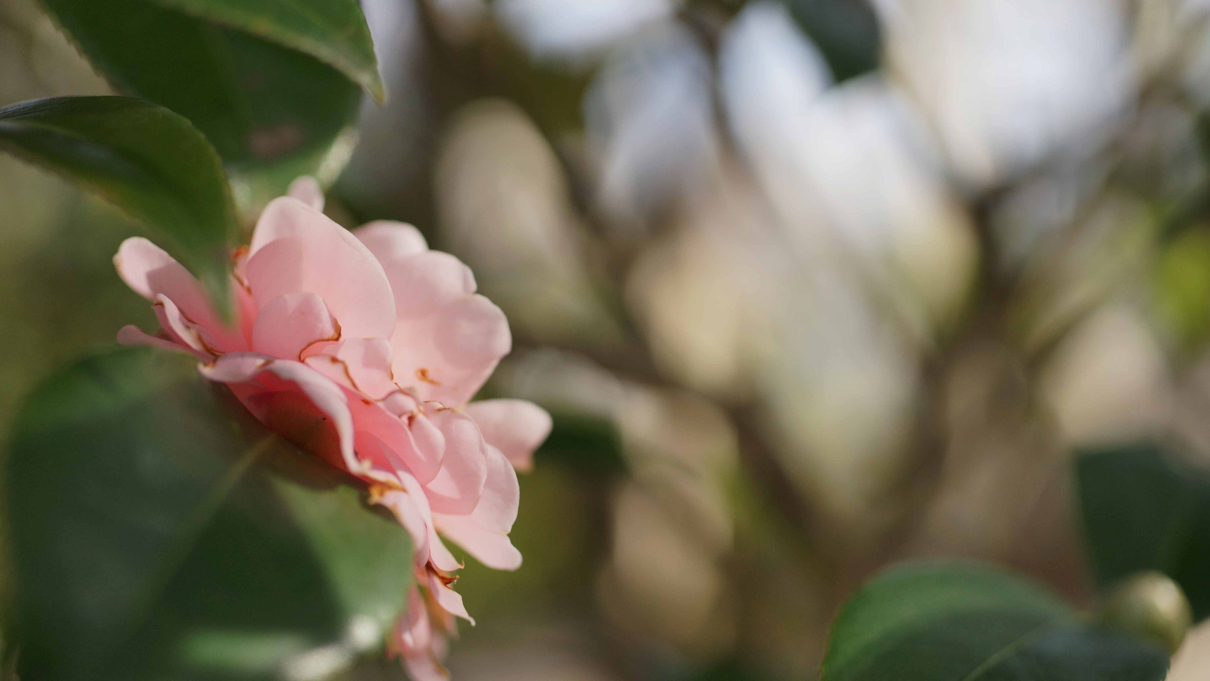 何枚も重なる花びらが美しい椿はよこがおも美しい