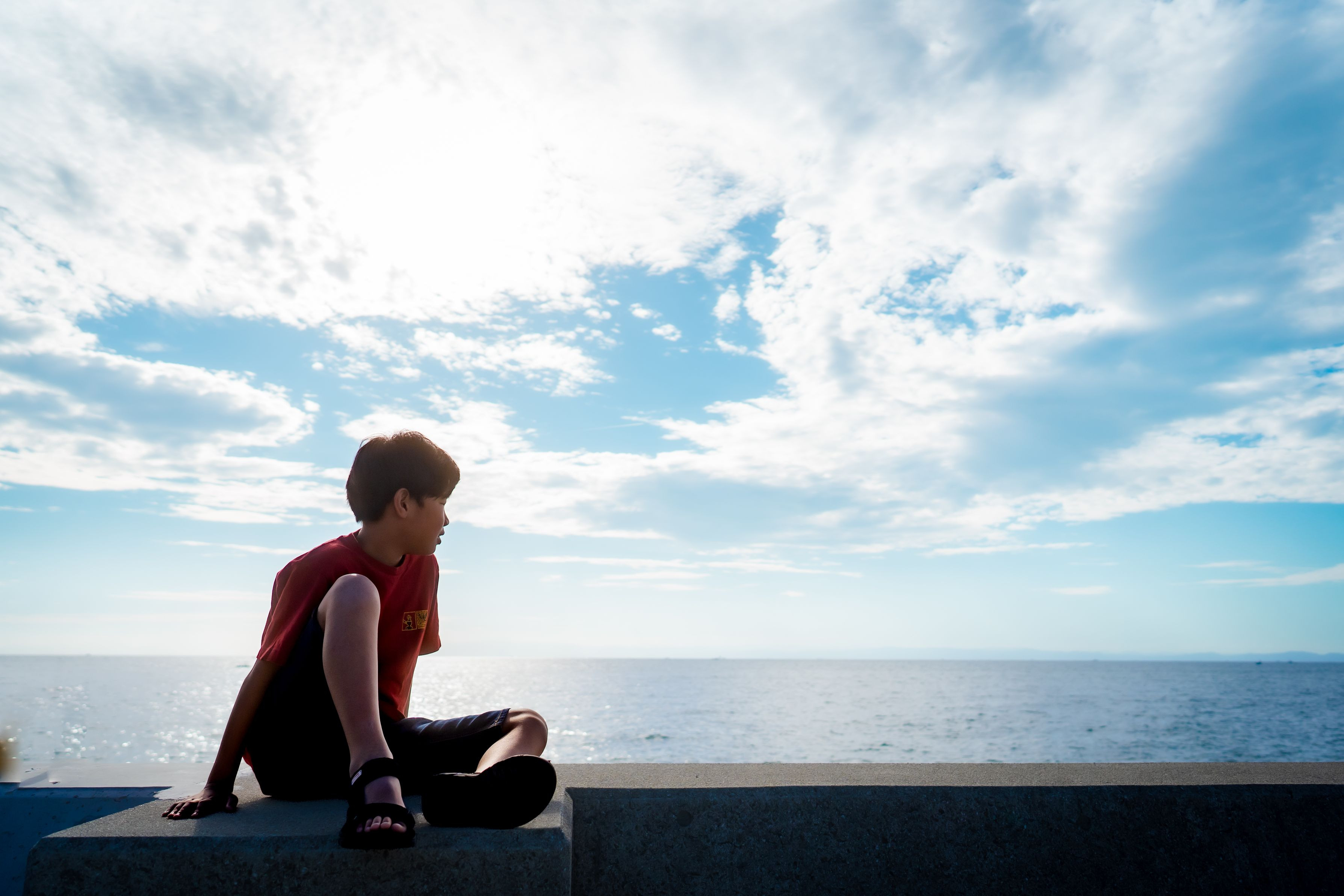 朝、海沿いを散歩中に勢いで胸壁に登り降りられなくなってる所を撮りました 撮るより助けて欲しいそうです