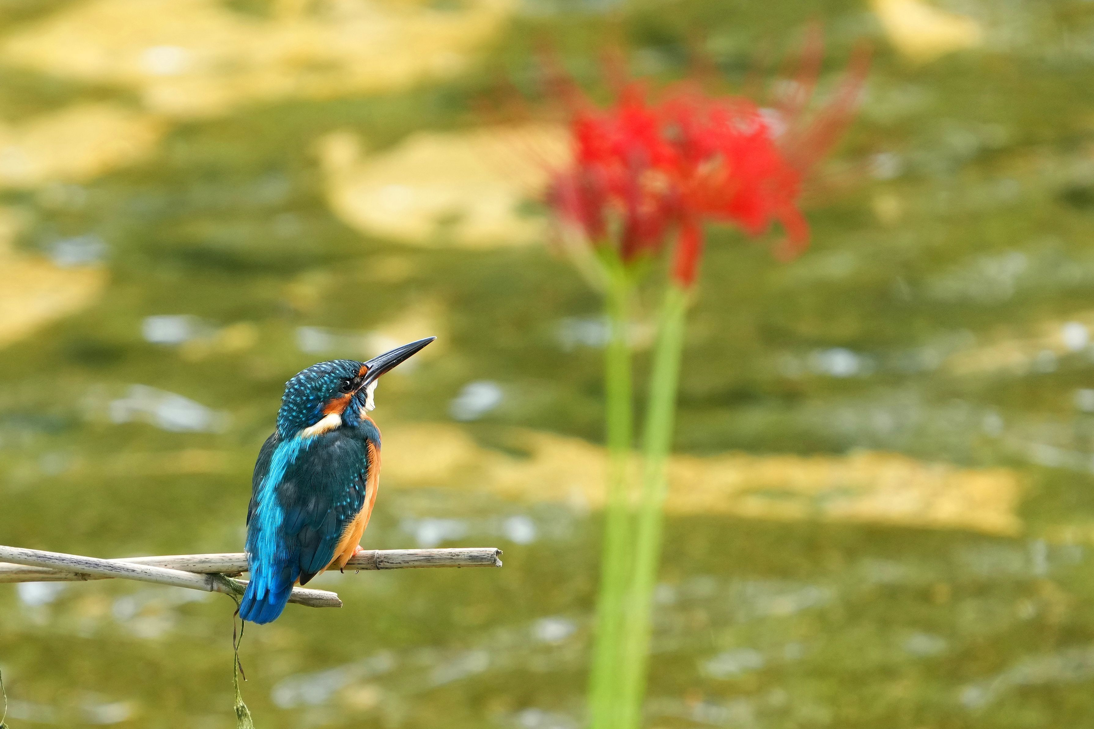 大雨の翌日、彼岸花と翡翠が撮れました。 # カワセミ # かわせみ