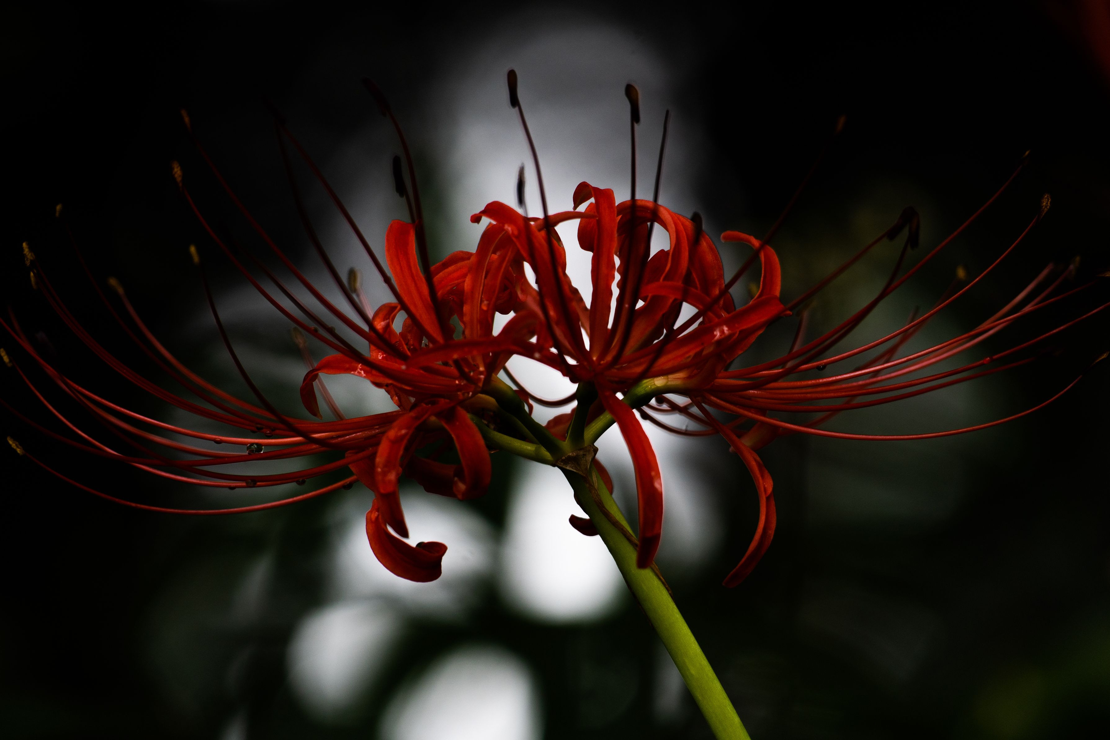 群生地から一輪だけ離れて咲いていた彼岸花。妖艶な魅力を感じて主役にしました。