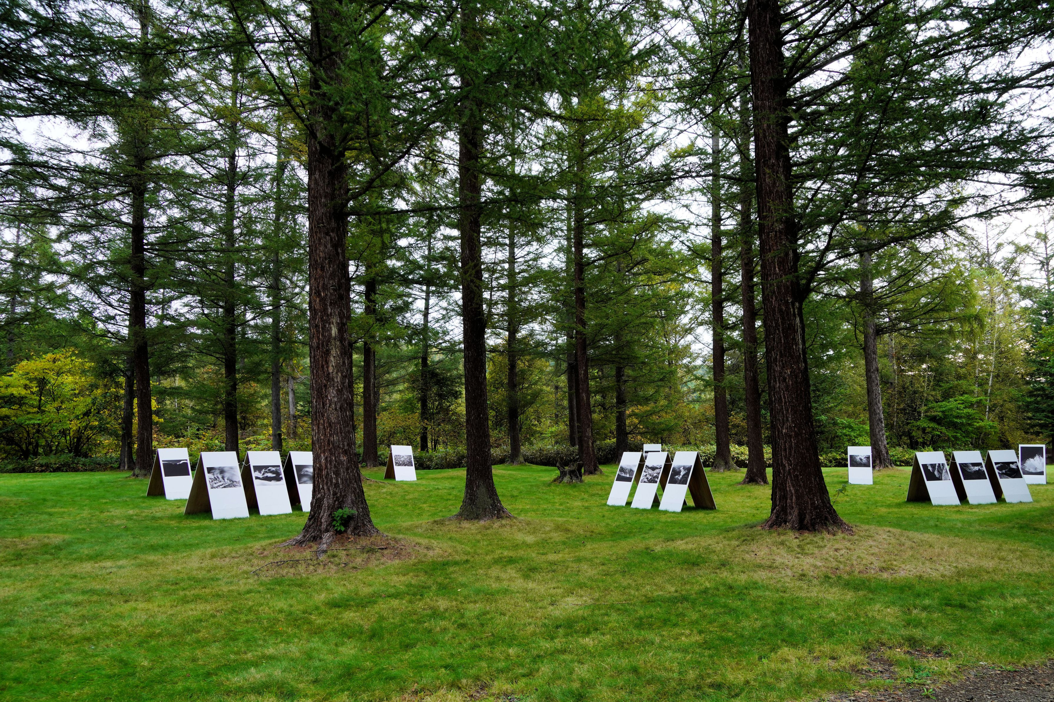 美瑛で写真家中西敏貴さんの作品が展示されていました。 雨にぬれても大丈夫なようでした。