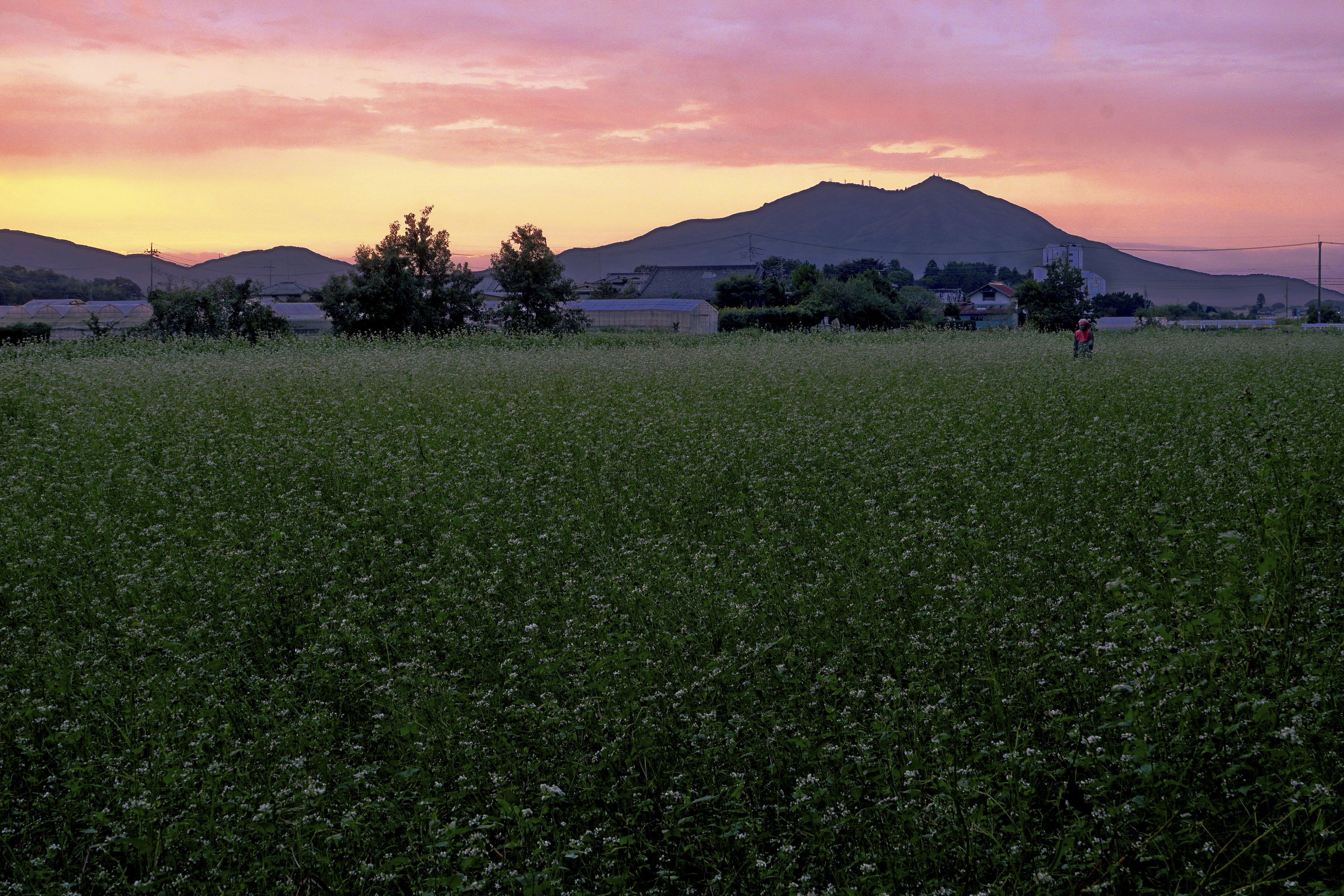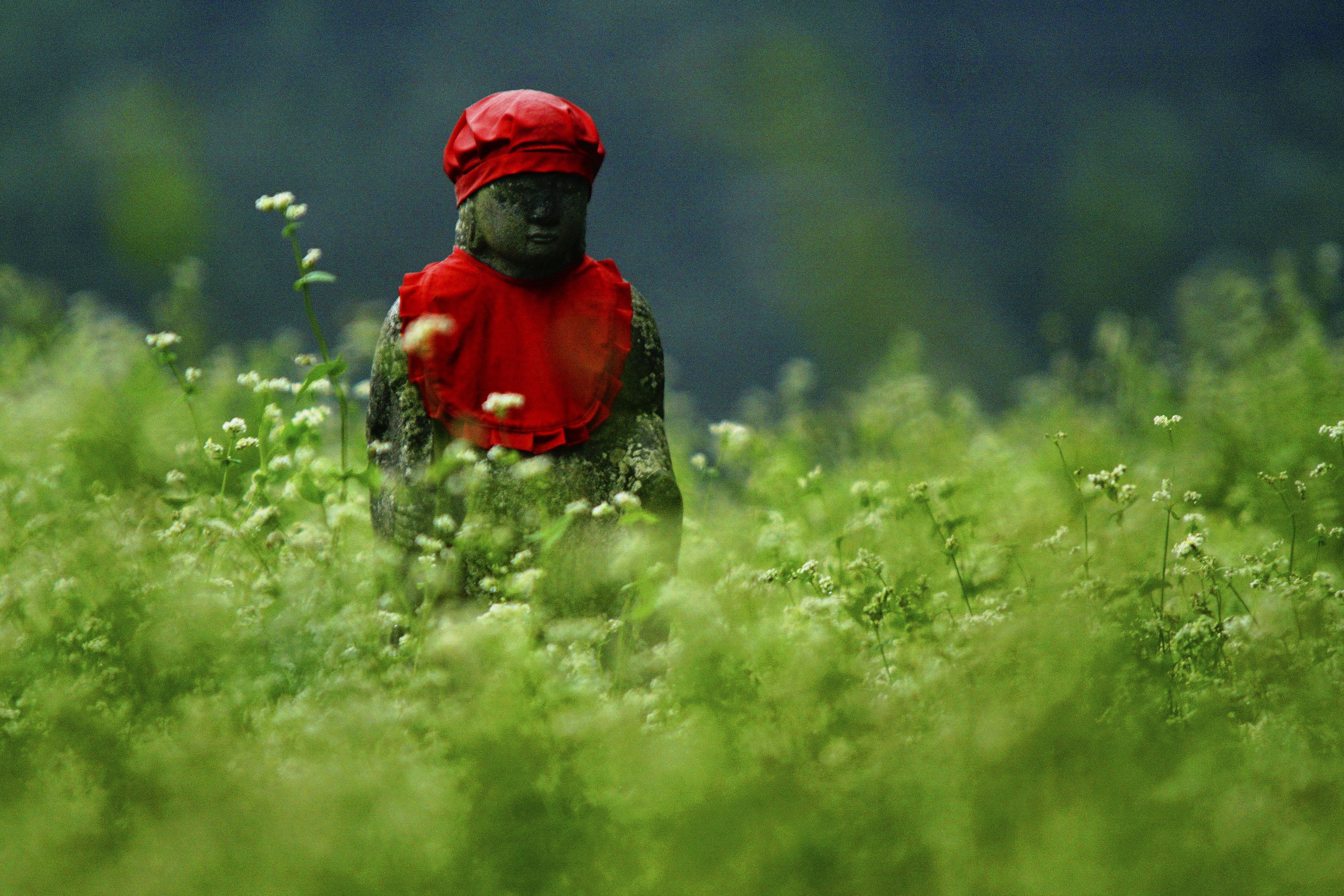 蕎麦畑の中に立つお地蔵さん